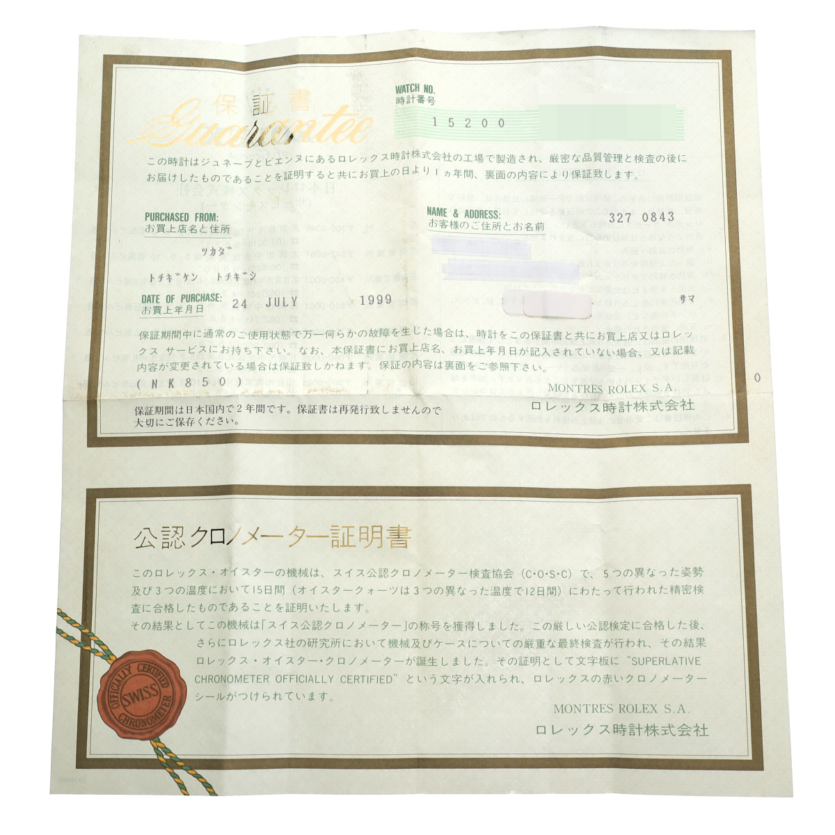- メーカー保証書( 1999年7月国内購入)