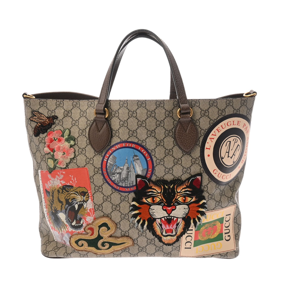 グッチ 2WAY トートバッグ ベージュ/エボニー/ブラウン 474085 493075 ソフトGGスプリームキャンバス/レザー レディース バッグ 【中古】【bag】