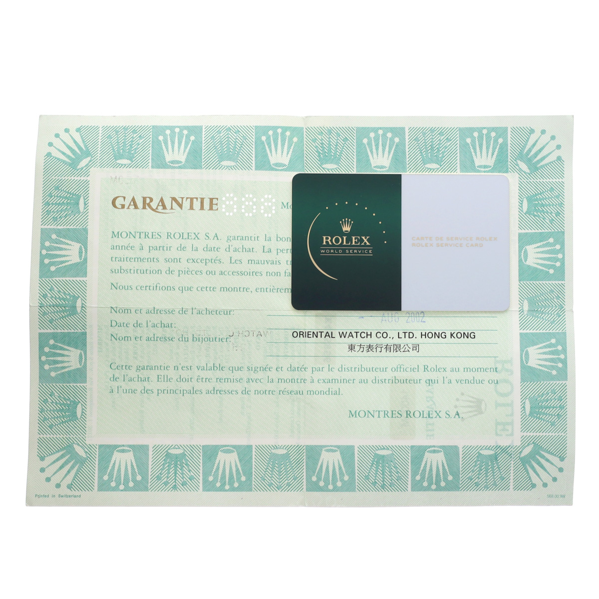 - メーカー保証書( 2002年8月海外購入) / 内箱(ダメージ)/タグ / サービスカード(有効期限2027年5月)
