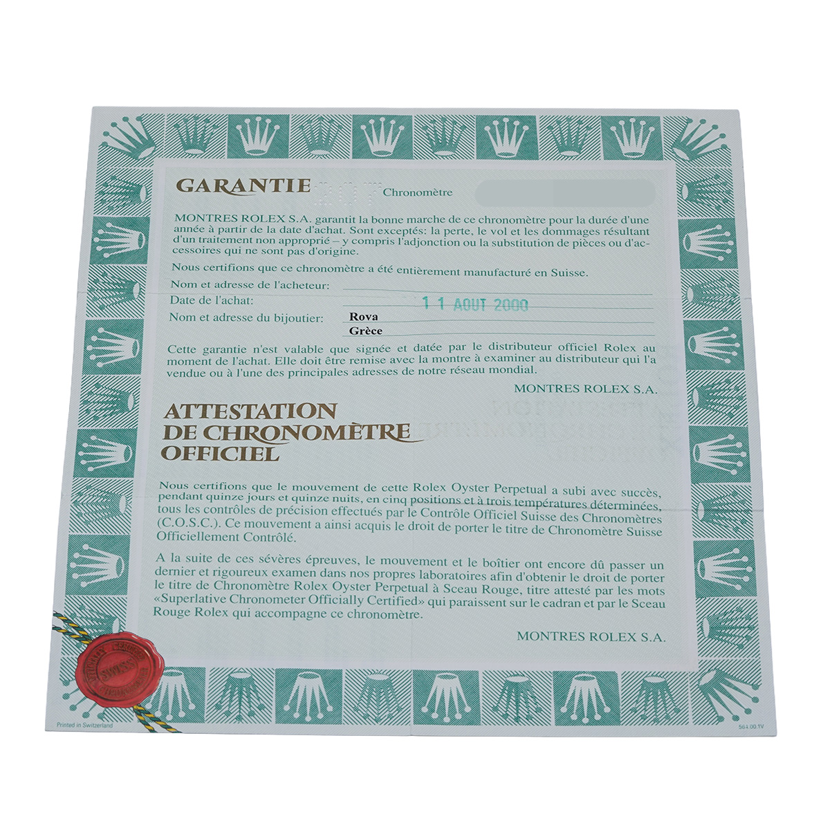 - メーカー保証書( 2000年8月海外購入) / 内箱(ダメージ)