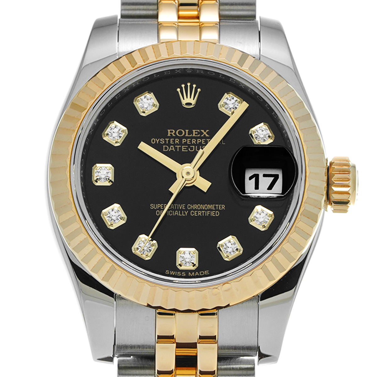 ロレックス デイトジャスト 179173G ブラック/ダイヤモンド レディース 時計 【中古】【wristwatch】