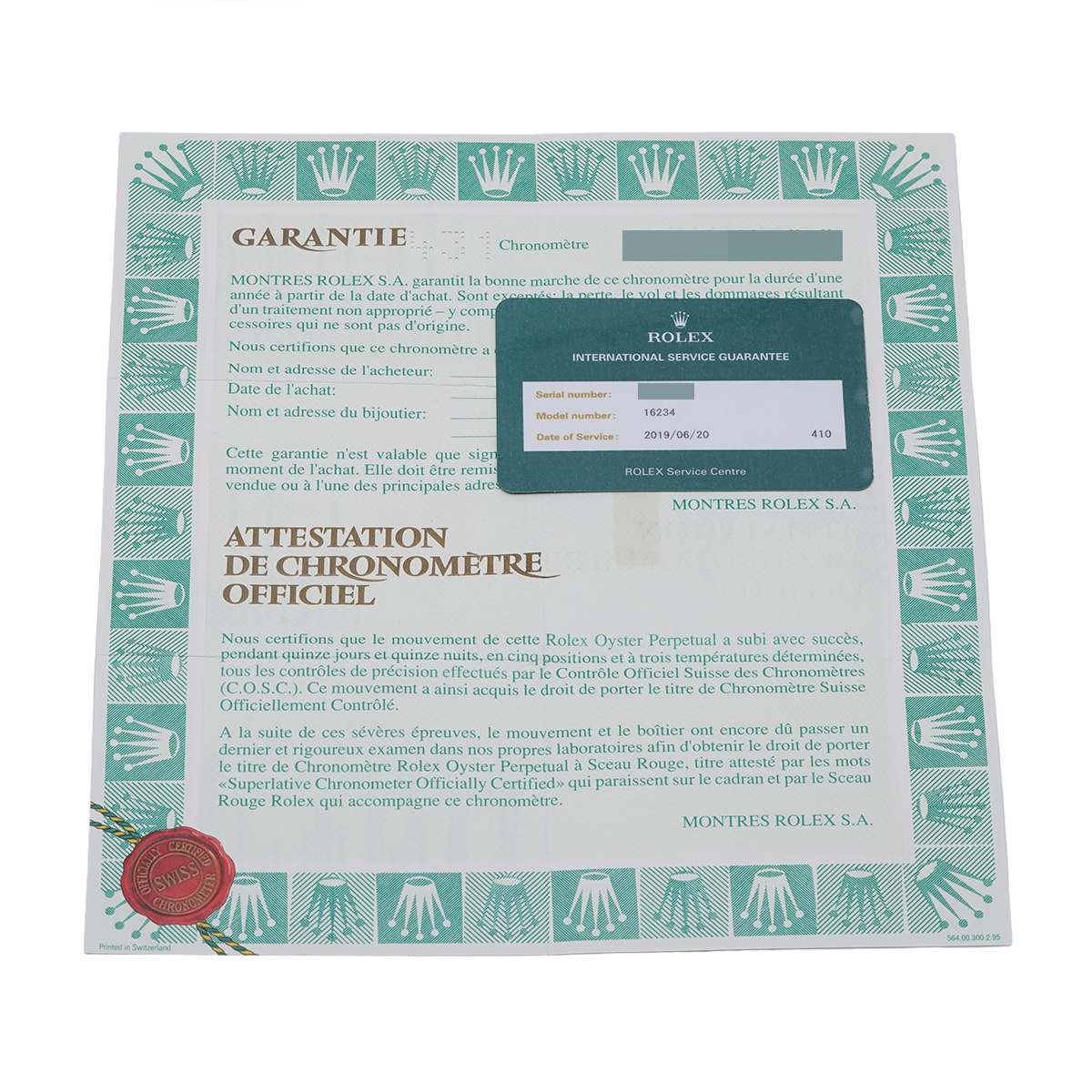 - メーカー保証書( 海外購入 購入日無記入) / 国際サービス保証書(2019年6月オーバーホール)