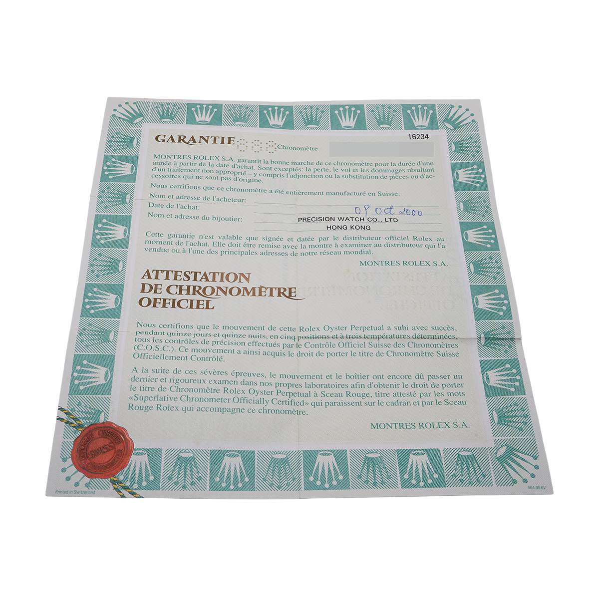 - メーカー保証書( 2000年10月海外購入)