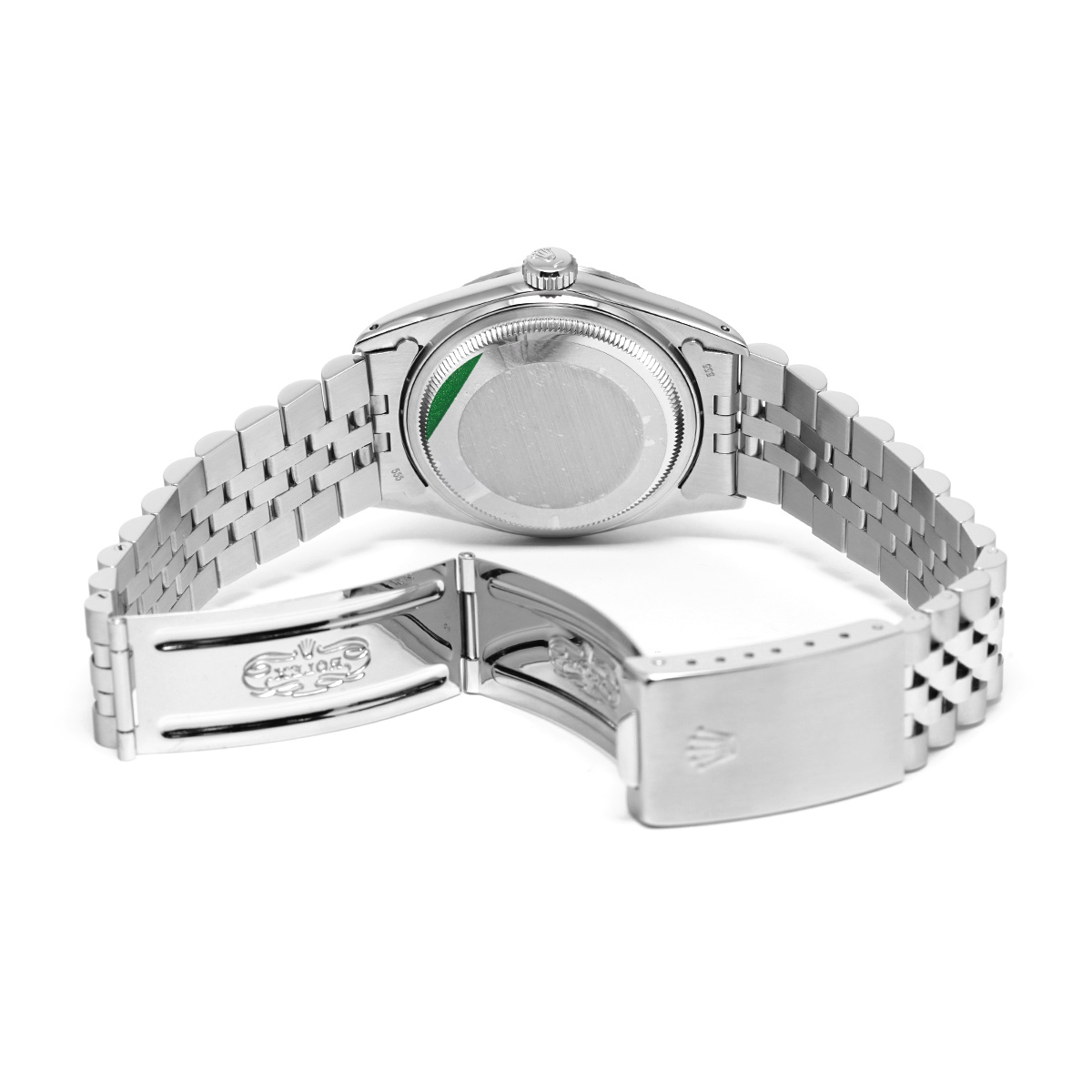 コメントロレックスとして初めてカレンダーの早送り機構と28,800振動/時のハイビートの心臓部を与えられた自動巻きムーブメント、Cal.3035を搭載して1977年頃に登場したデイトジャスト Ref.16030です。 風防はまだプラスチック製ですが、先代の1601まで採用されていた文字盤外周のステップが廃止されて文字盤がフラットになったことで、モダンな雰囲気になった点が特徴的です。