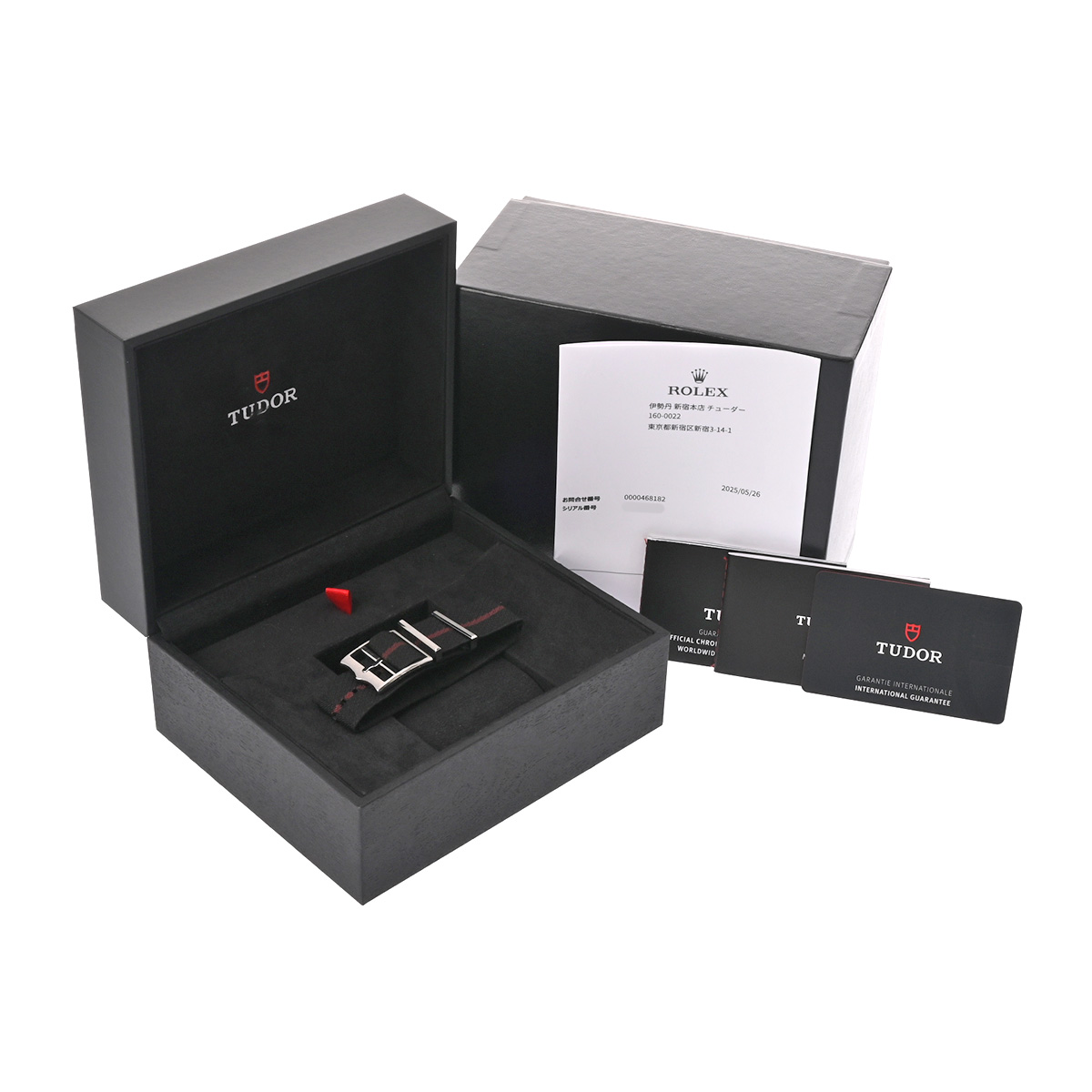 - メーカー保証書( 2021年3月購入) / 替えベルト( ナイロン/ブラック) / メーカー箱/冊子 / 明細書(2025年5月内部点検調整他)