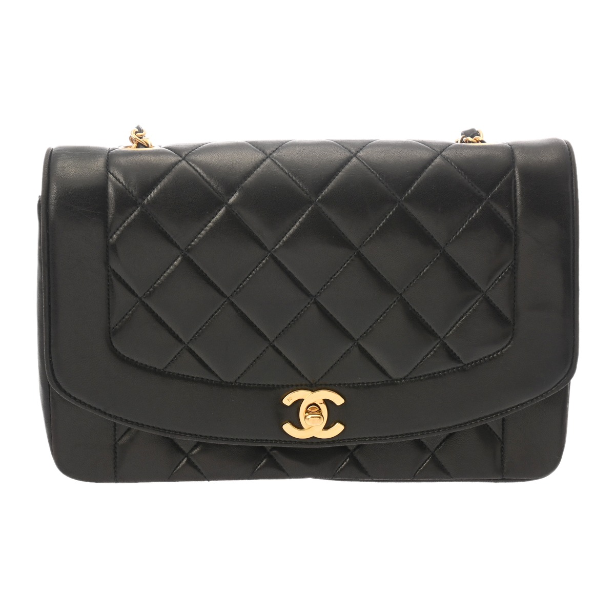 シャネル ダイアナ チェーンショルダー 25cm ブラック A01165 ラムスキン レディース バッグ 【中古】【bag】