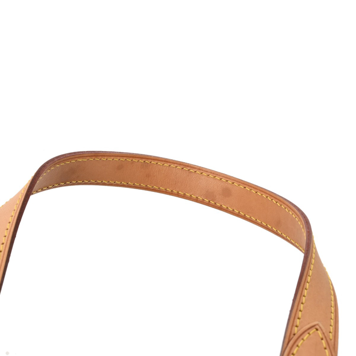 - つぶれやテカリ、薄汚れやスレ、ヌメ革にヤケやシミ、ショルダーや持ち手にクセ、金具にスレなど少々使用感がございます。