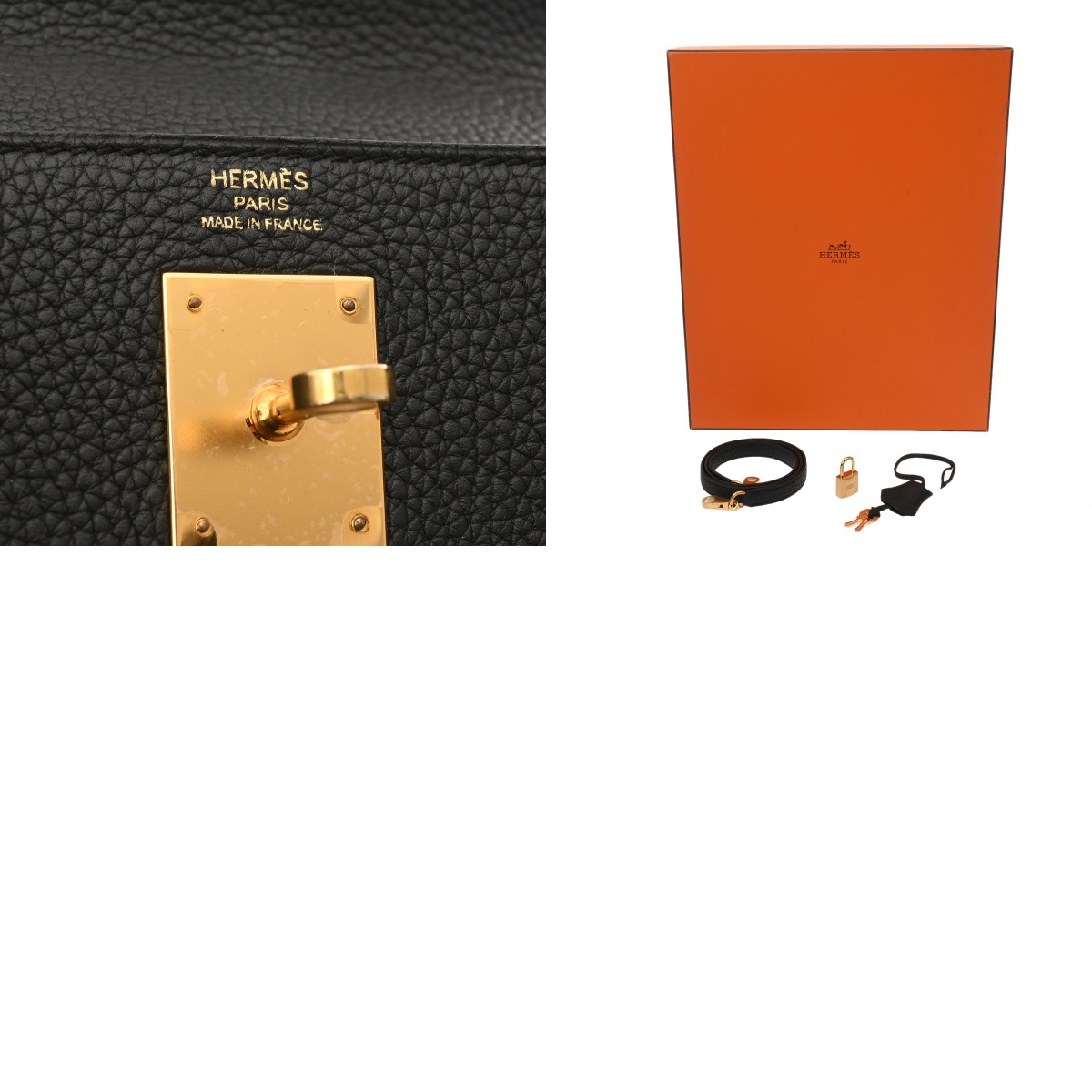 - メーカー箱(ダメージ)/保存袋/ショルダーストラップ/カデナ/クロシェット(鍵付き)/弊社販売証明書