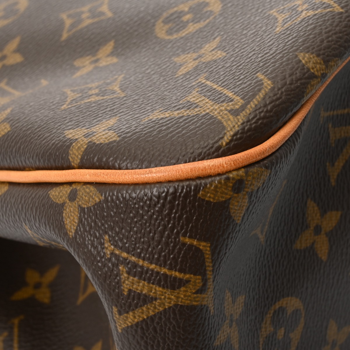 - つぶれ、若干たたみクセ、テカリ、スレ、薄汚れ、ヌメ革にヤケやシワ、コバに若干毛羽立ち、ショルダーにクセ、金具に変色やスレキズなどがございます。