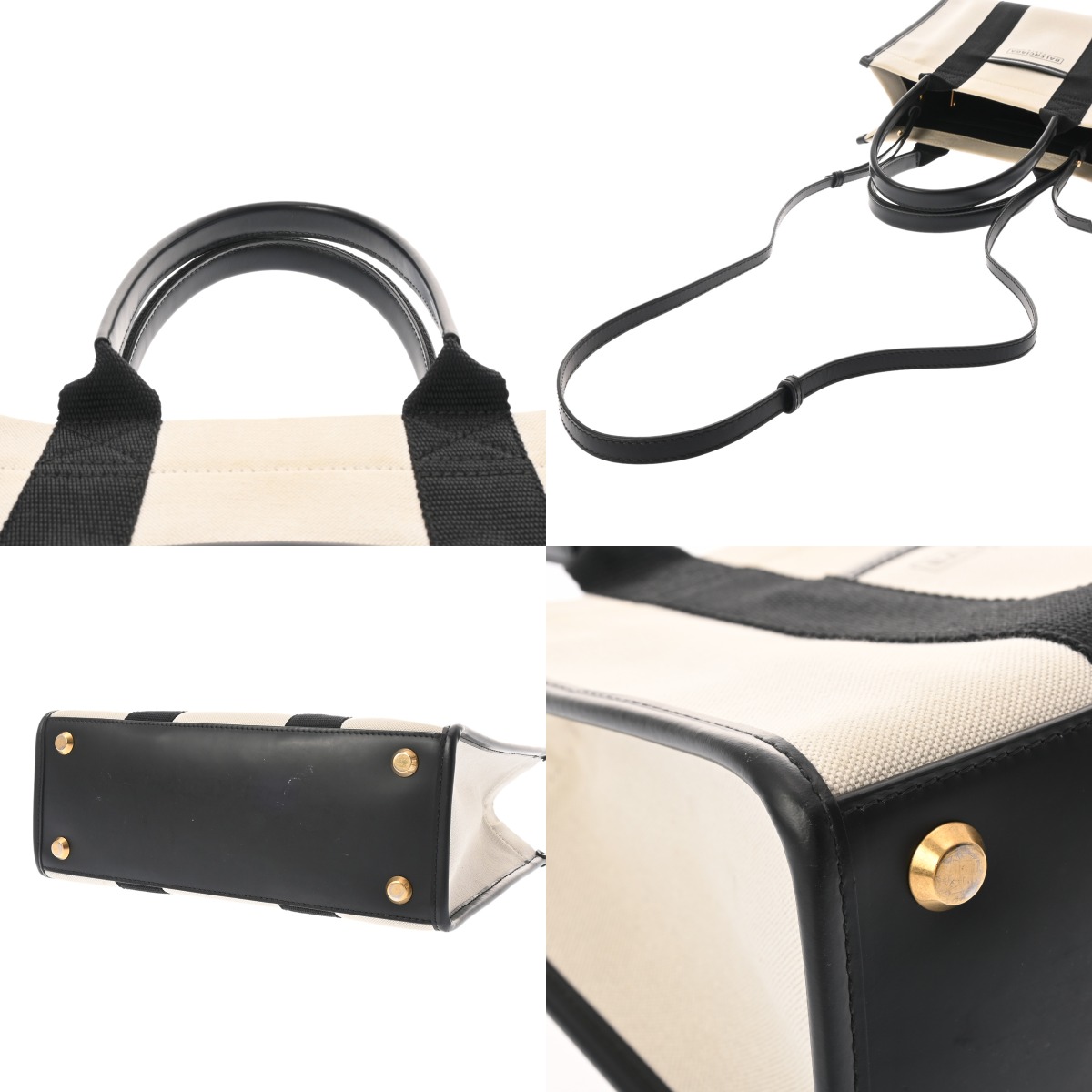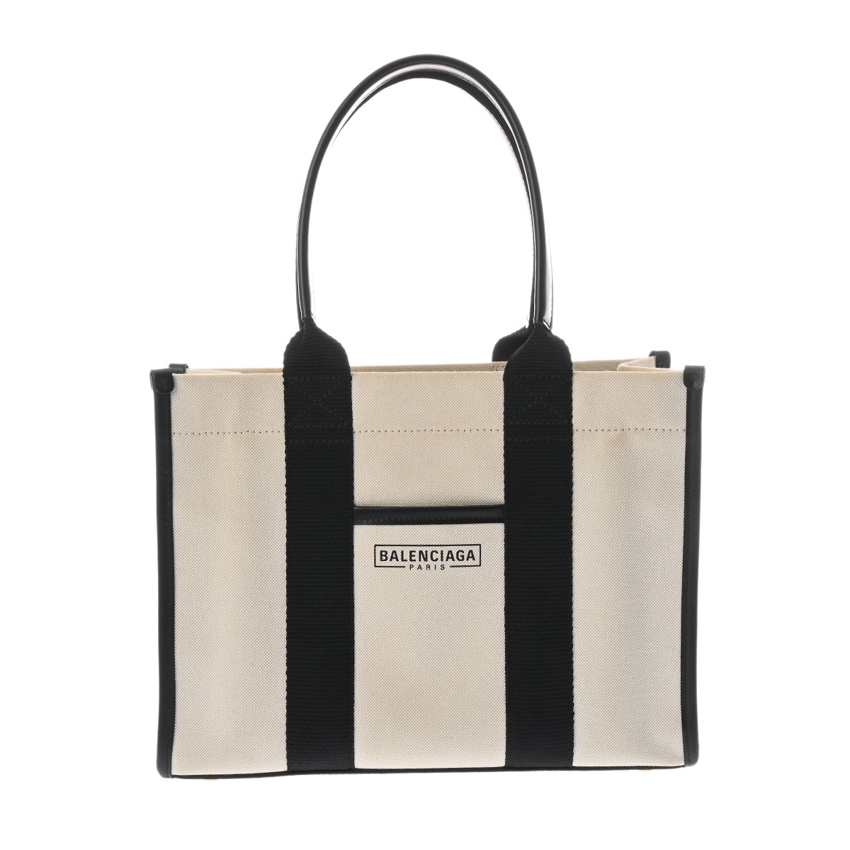バレンシアガ ハードウェア スモールトートバッグ ホワイト/ブラック 671402 キャンバス/レザー レディース バッグ 【中古】【bag】