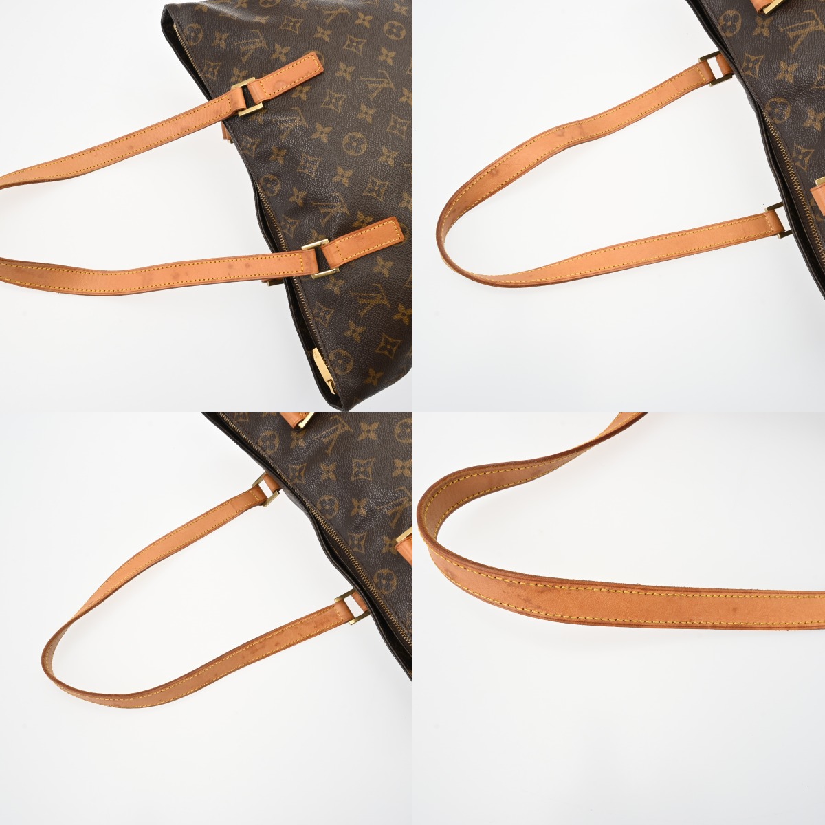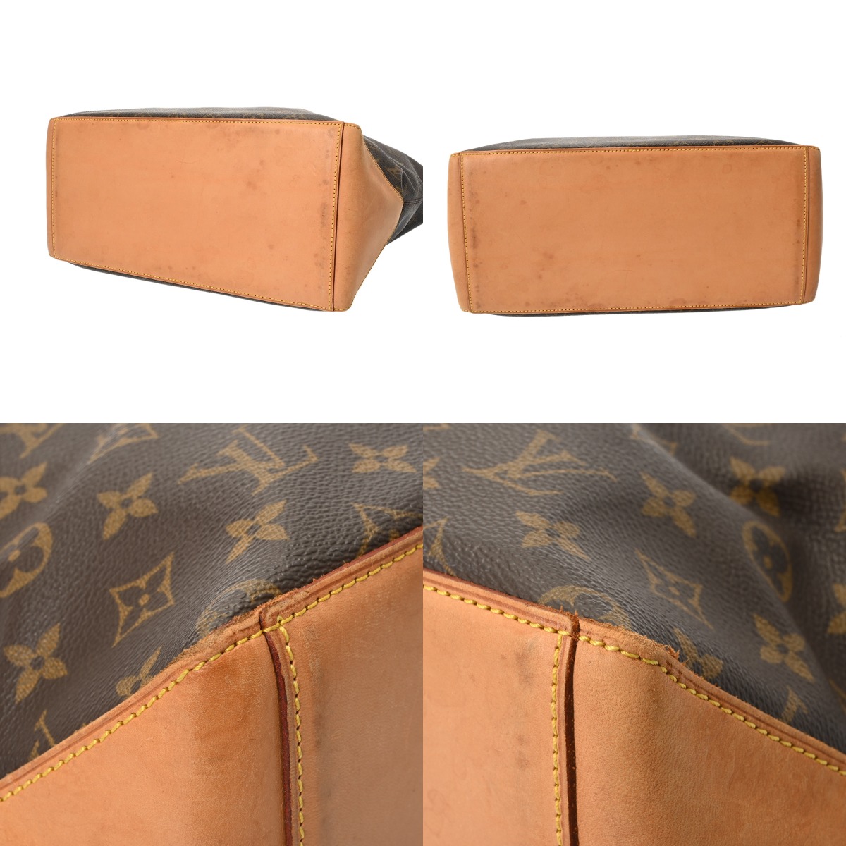 - 型崩れ、たたみクセ、テカリ、薄汚れやスレ、ヌメ革にヤケやシミ、ショルダーにクセやシワ、コバスレ、ハゲ、金具にメッキハガレなど使用感がございます。