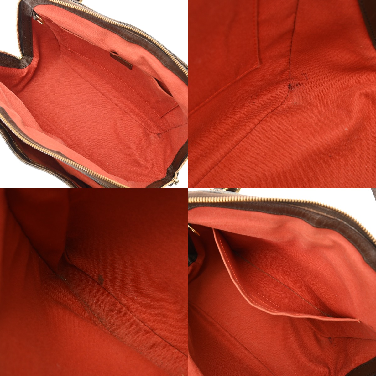 - つぶれや型崩れ、テカリ、持ち手にシワやクセ、コバに若干ハゲ、ポケット口にヨレ、薄汚れやスレ、金具にくすみやメッキハガレなど使用感がございます。