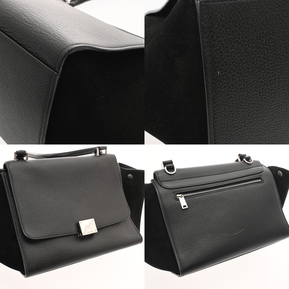セリーヌ トラペーズ ミディアム 2WAY ブラック スウェード/グレインレザー レディース バッグ 【中古】【bag】