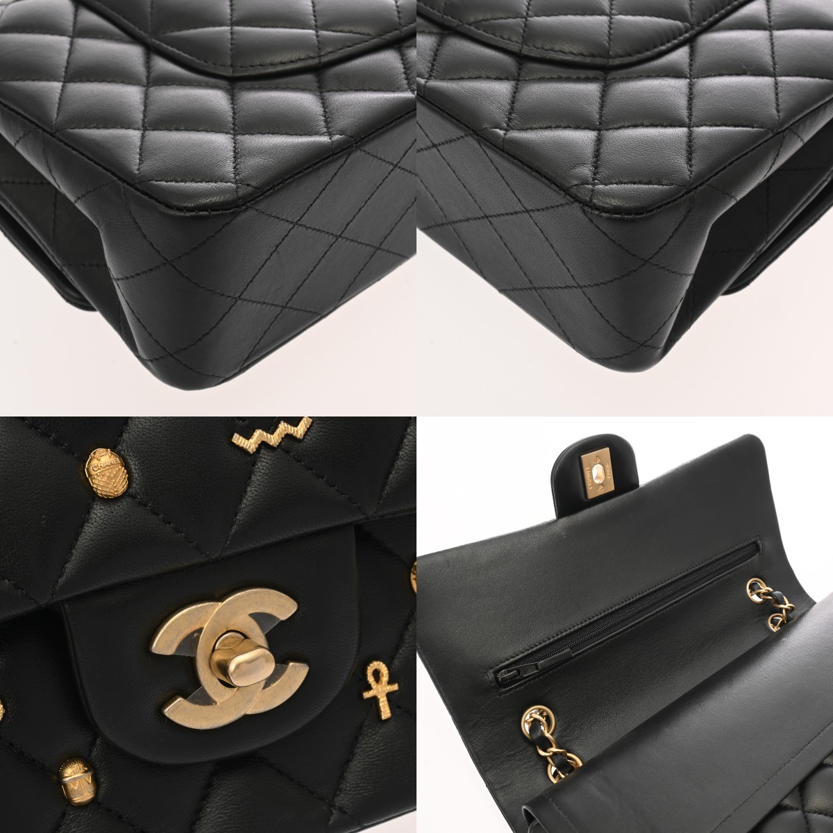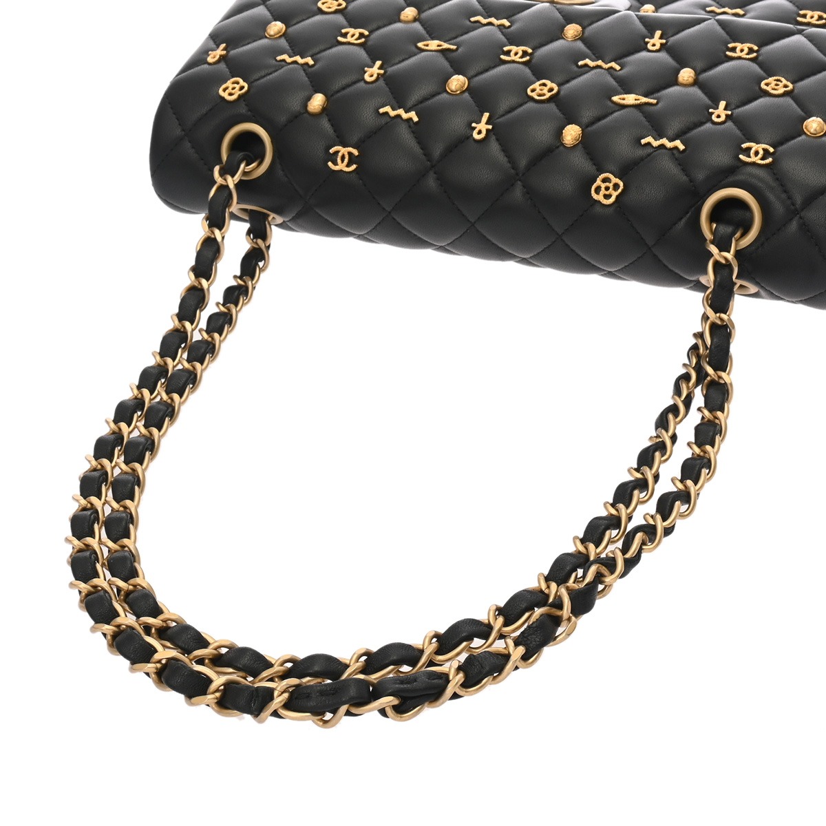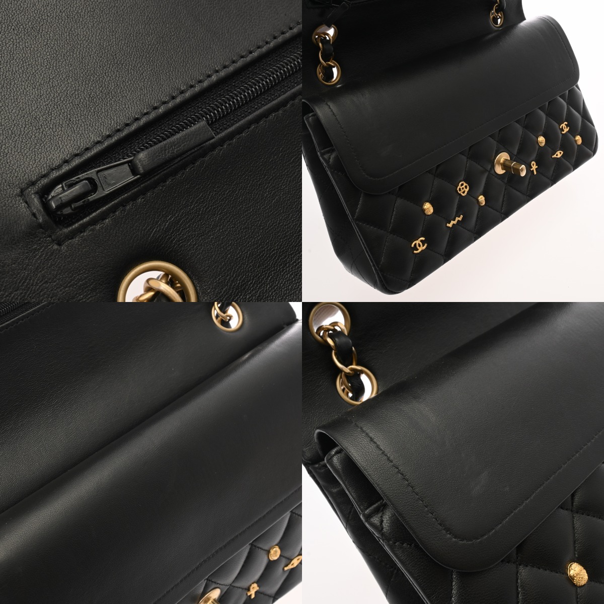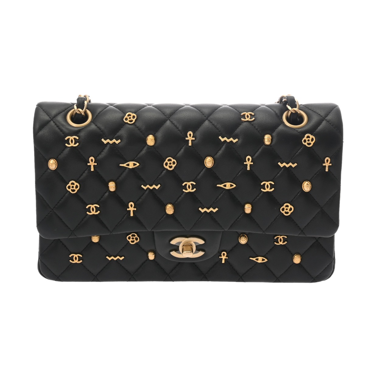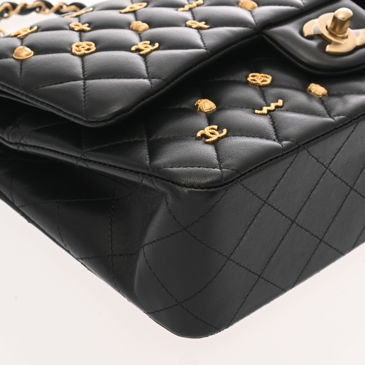 シャネル マトラッセ WフラップWチェーンショルダー 25 2018年AW ブラック ラムスキン レディース バッグ 【中古】【bag】