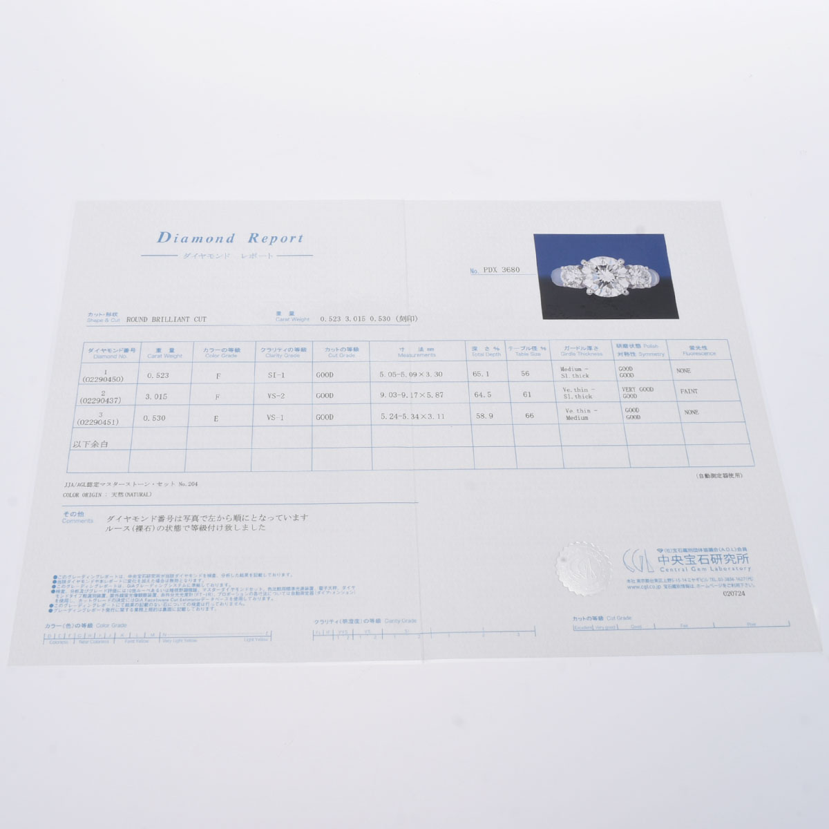 - 鑑定書 / 中央宝石研究所(CGL)
