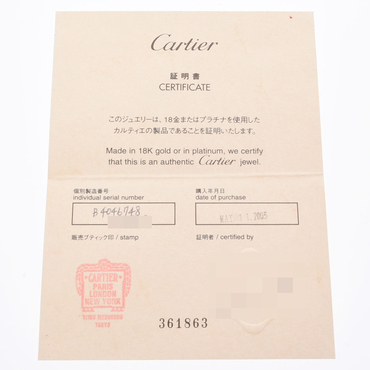 - メーカー保証書( 2003年5月国内購入) / メーカー箱