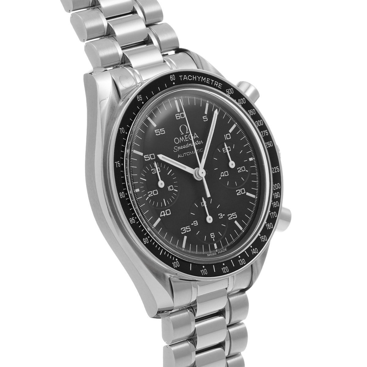 コメントこのスピードマスター リデュースドとも呼ばれるモデルは、オメガの代表的な時計であるスピードマスター プロフェッショナルのツールとして研ぎ澄まされた精悍さはそのままに、ケース径を39ミリに縮小して腕上での収まりを改善すると共に、自動巻きムーブメントの採用によって利便性を向上させることで、より多くの人々の日常に寄り添える時計を目指したものです。