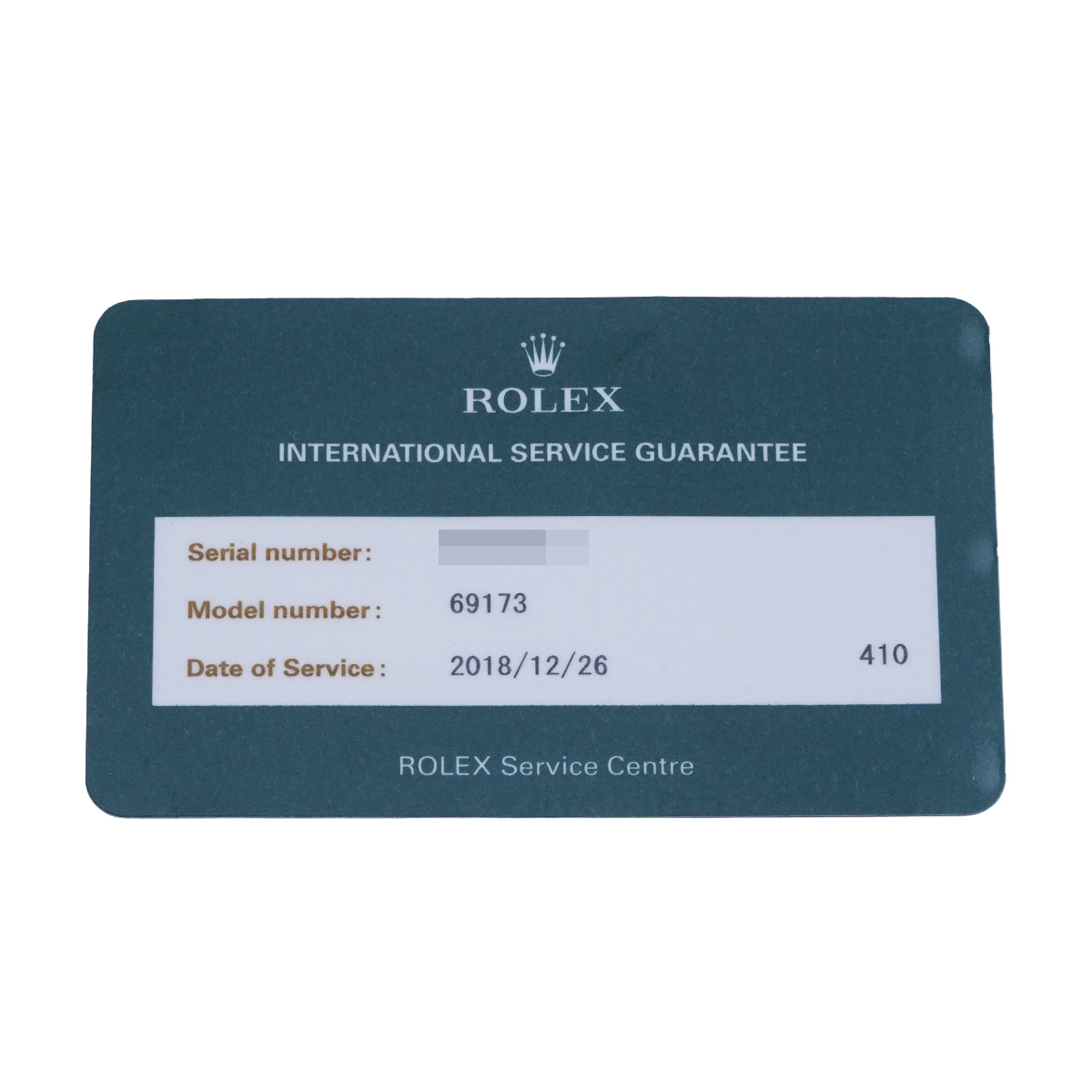 - 国際サービス保証書(2018年12月自社工房にてオーバーホール)