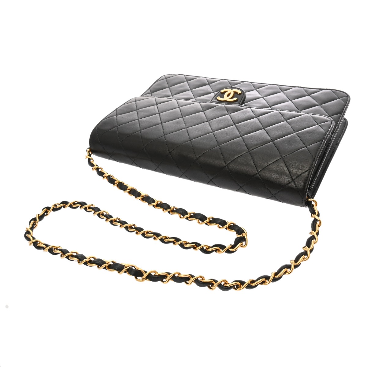 シャネル マトラッセ プッシュロックチェーンショルダー ブラック ラムスキン レディース バッグ 【中古】【bag】
