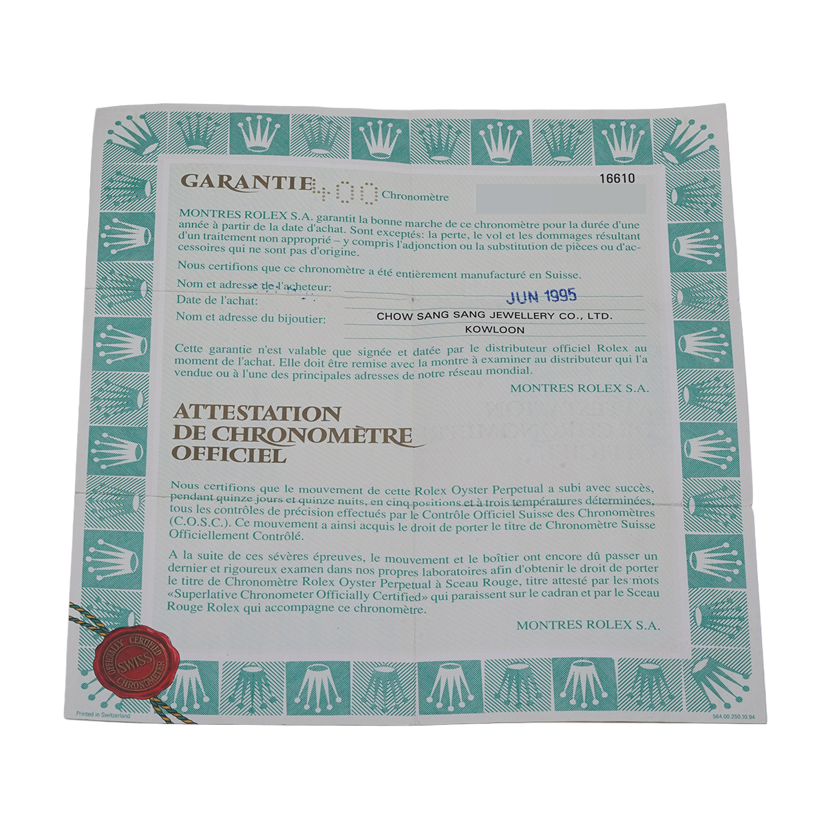 - メーカー保証書( 1995年6月海外購入)