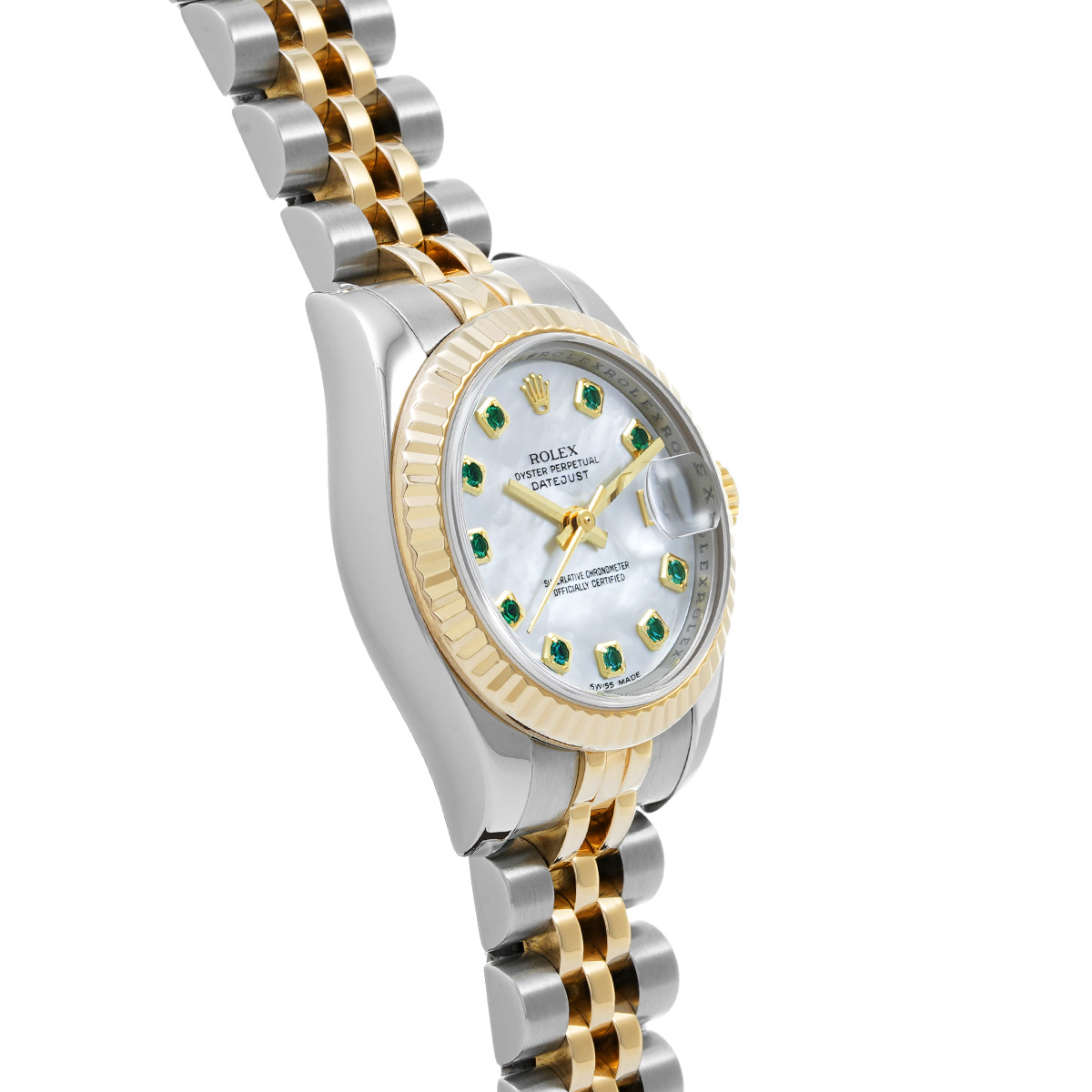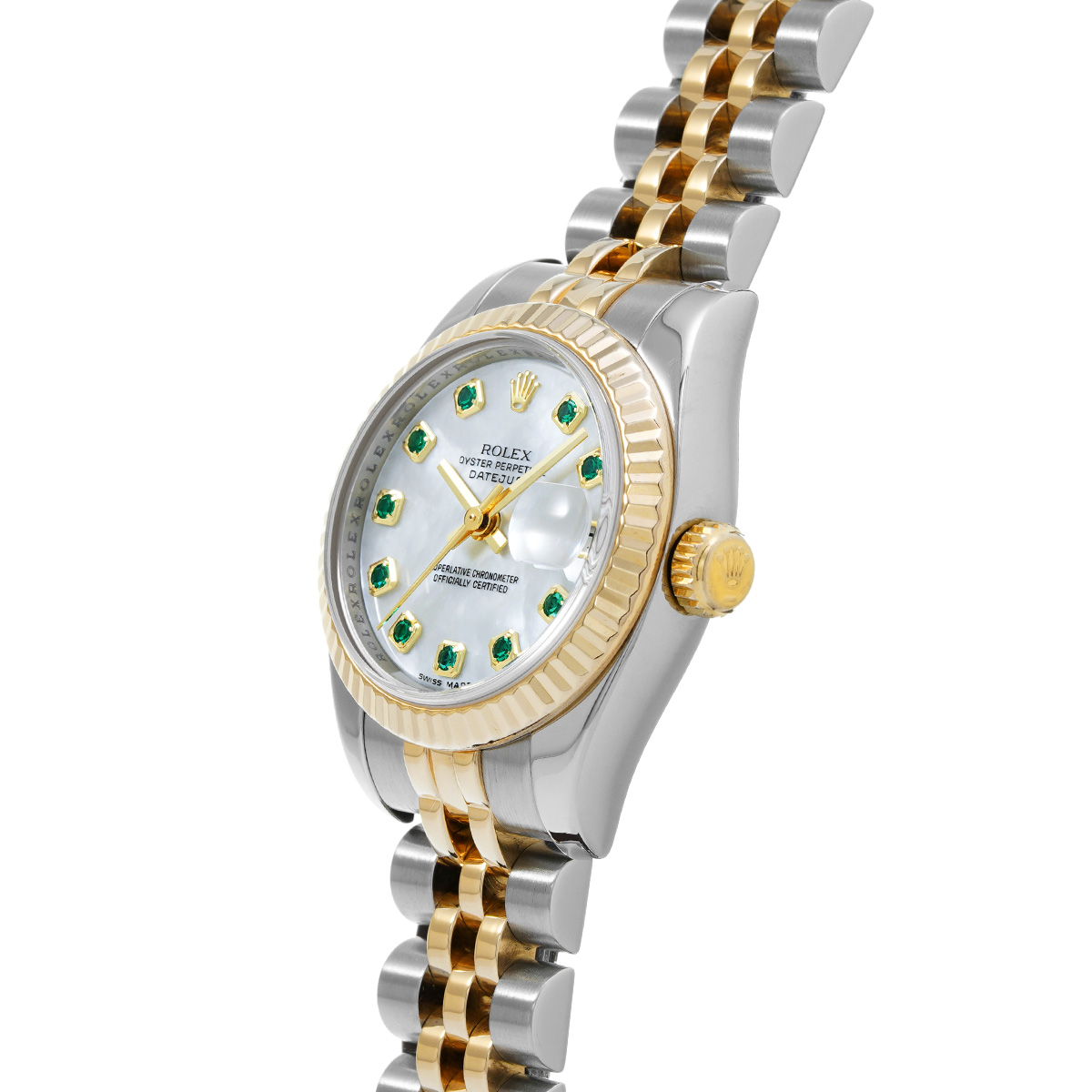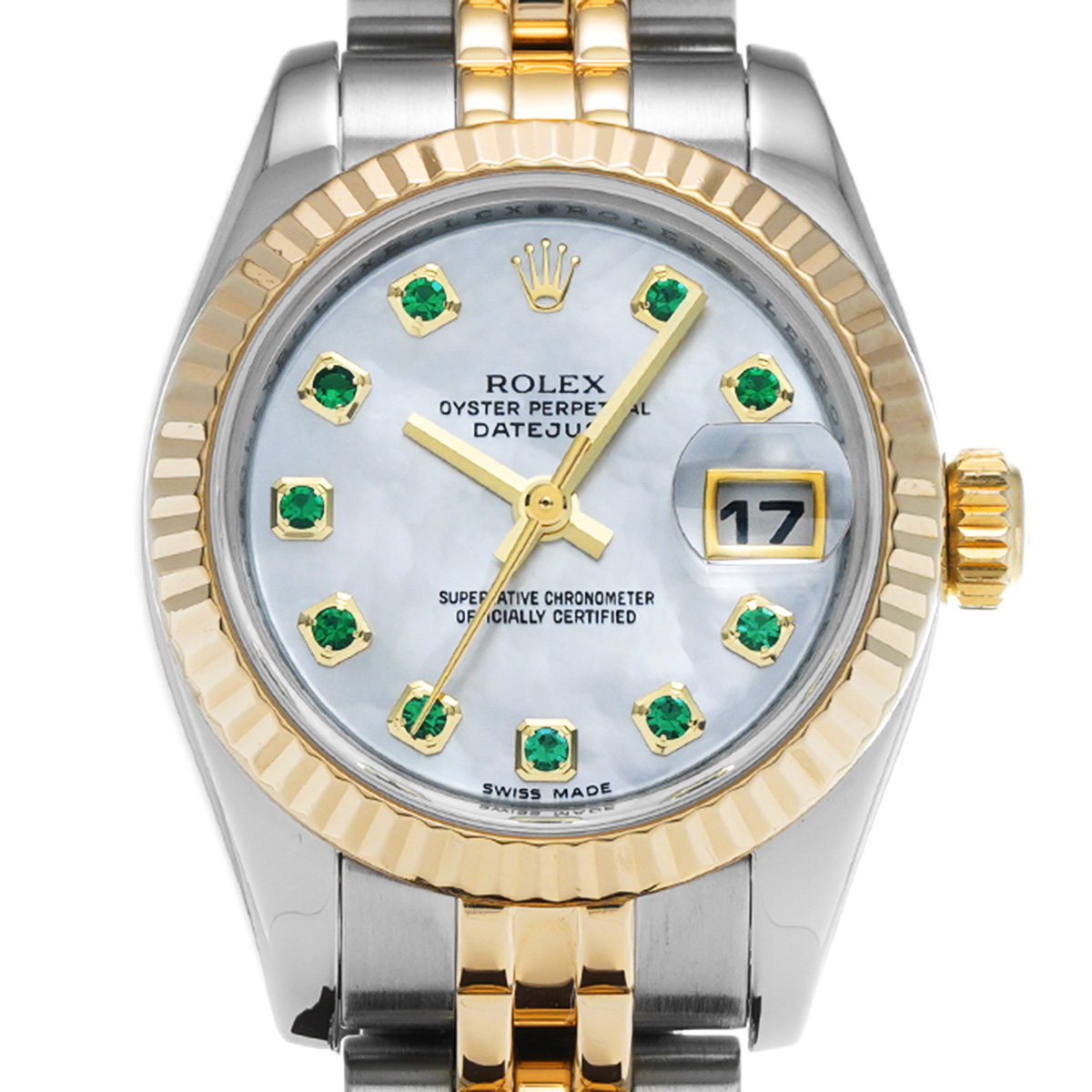 ロレックス デイトジャスト 179173NGE ホワイトシェル/エメラルド レディース 時計 【中古】【wristwatch】