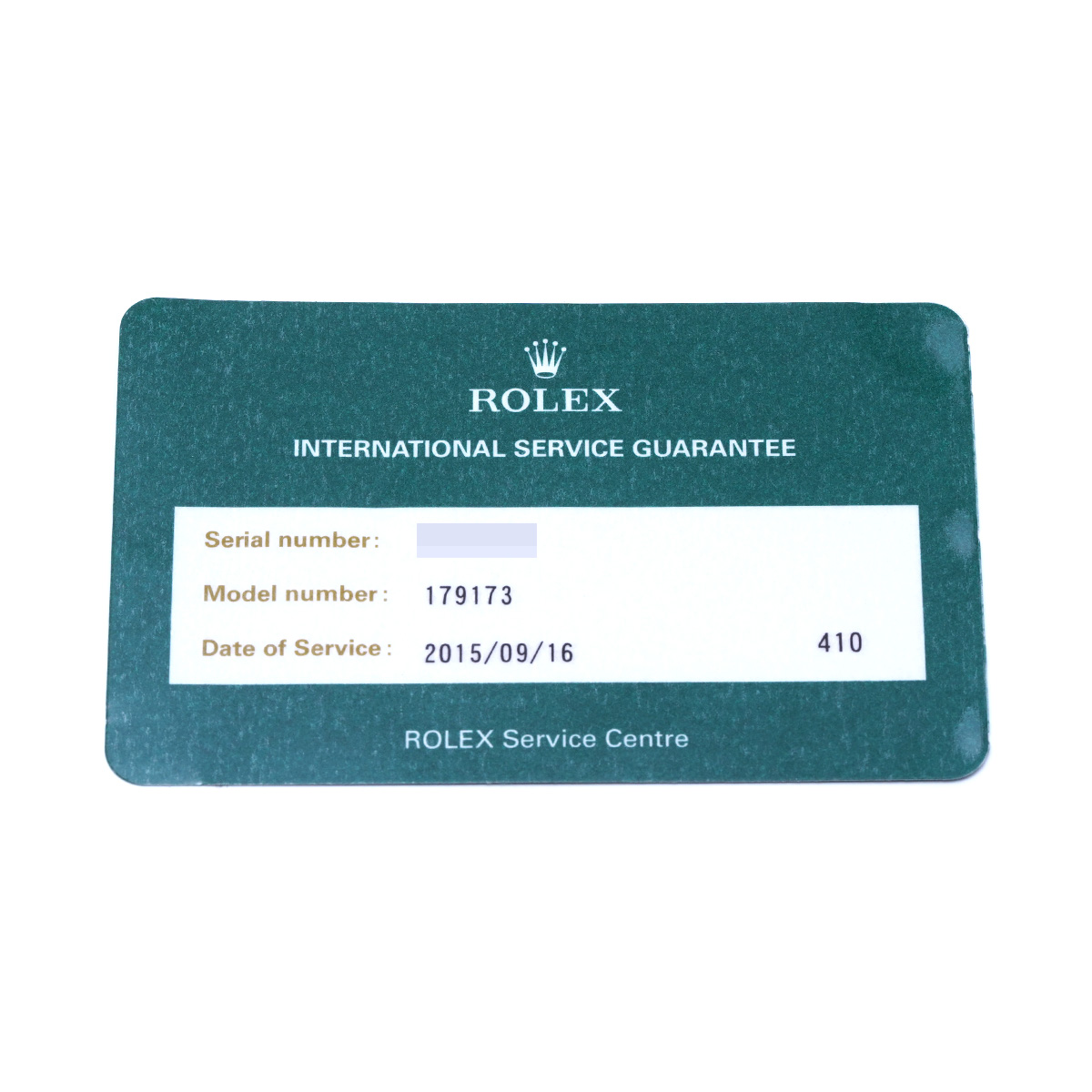 - メーカー箱(ダメージ) / 国際サービス保証書(2015年9月オーバーホール)