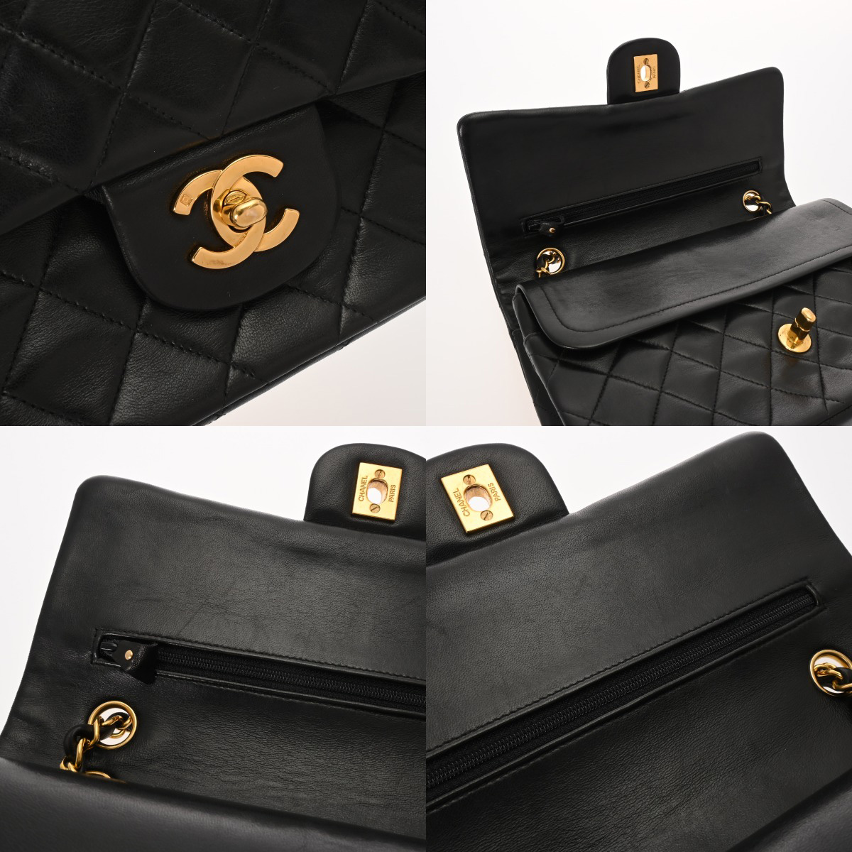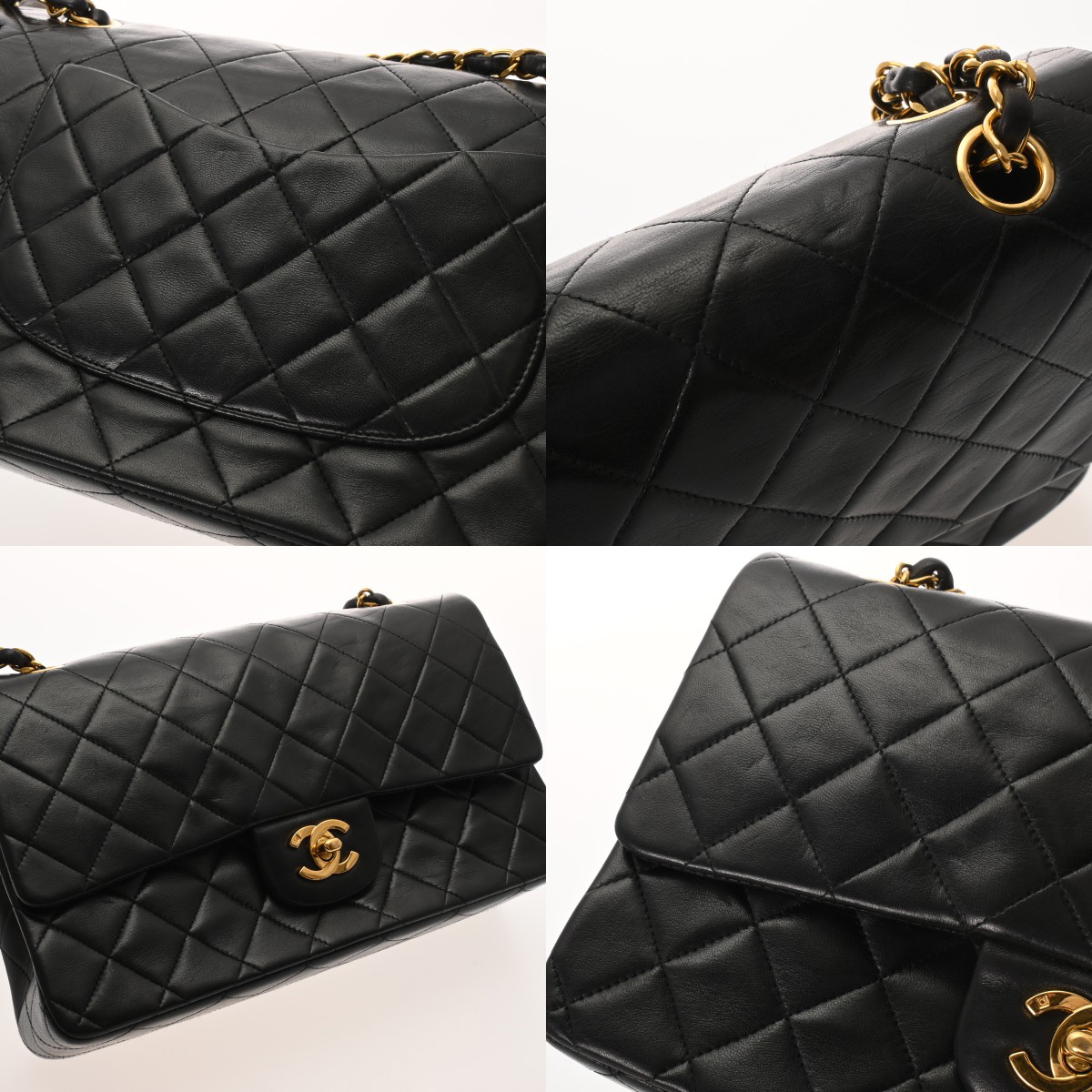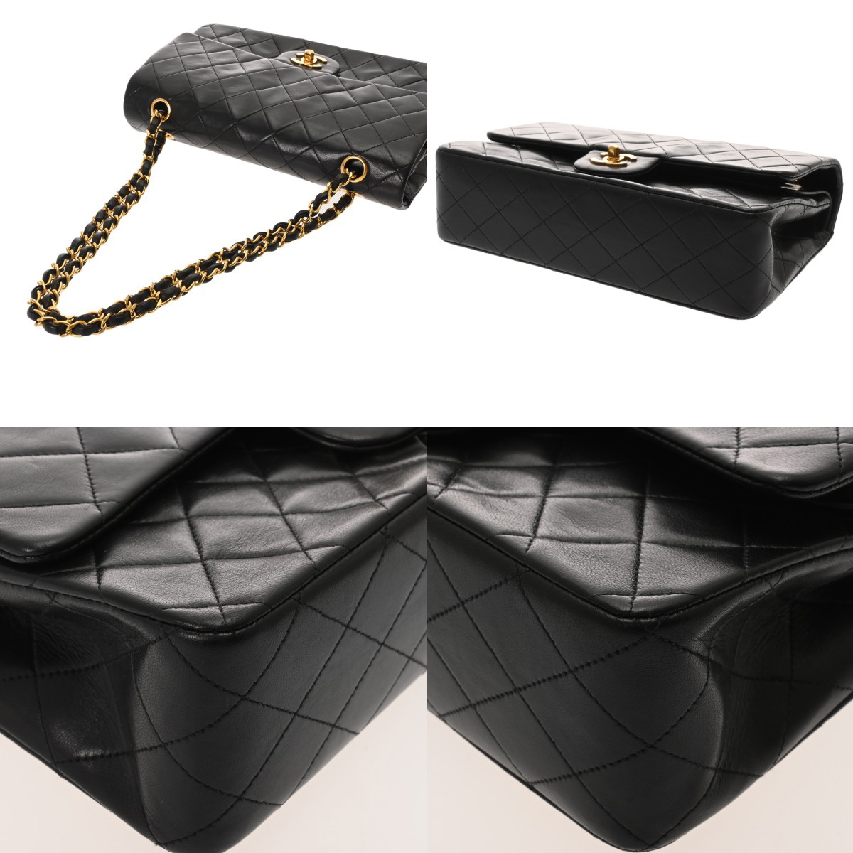シャネル マトラッセ Wフラップ Wチェーンショルダー 25 ブラック A01112 ラムスキン レディース バッグ 【中古】【bag】