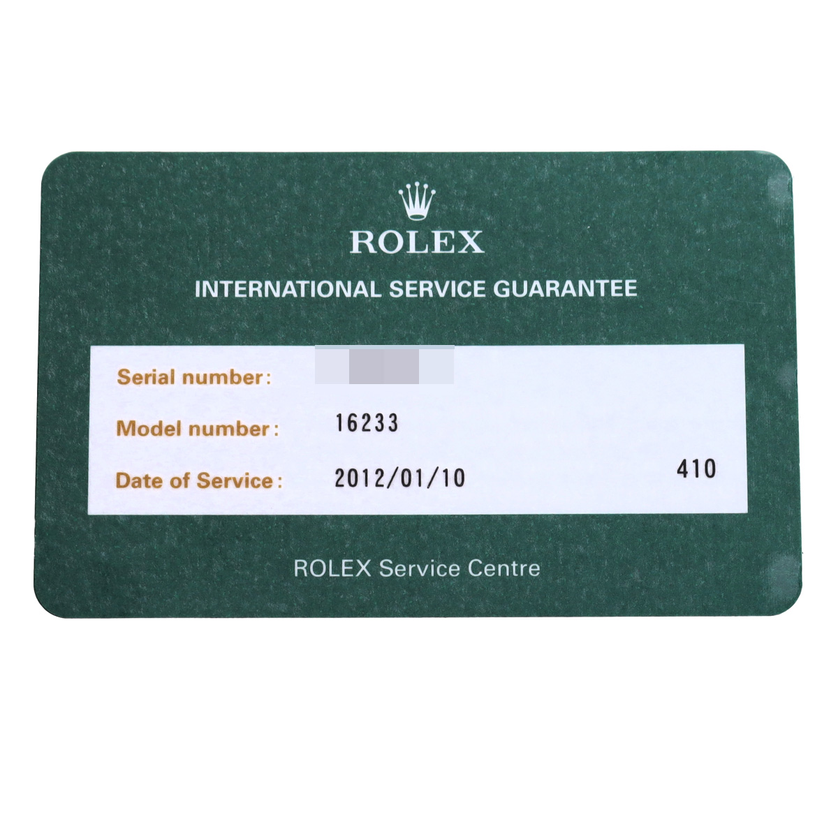 - 国際サービス保証書(2012年1月オーバーホール)