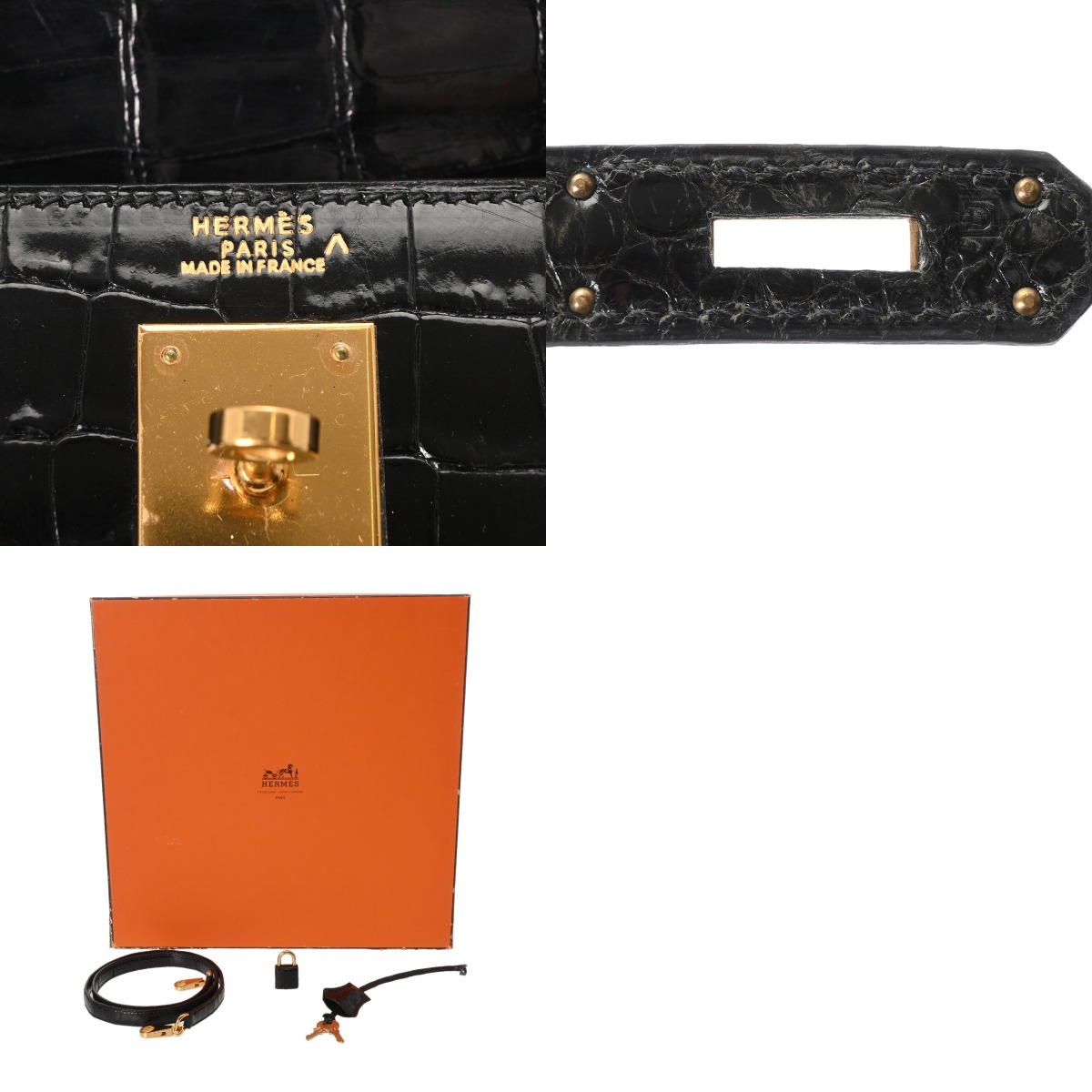 - メーカー箱(ダメージ)/保存袋/ショルダーストラップ/カデナ/クロシェット(鍵付き)/弊社販売証明書