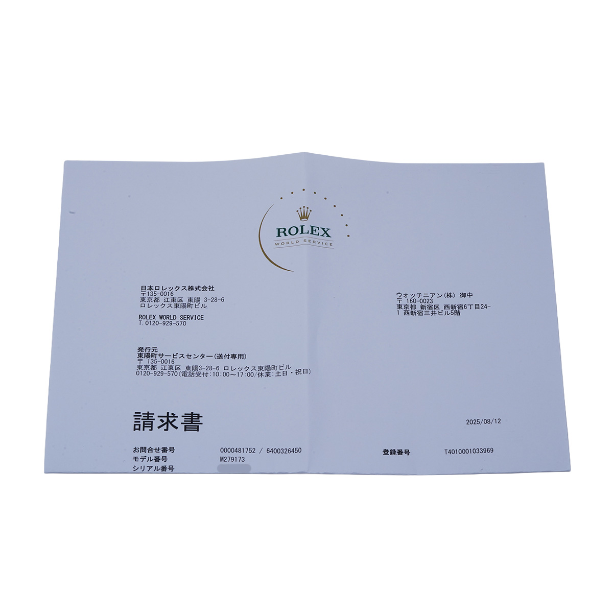 - メーカー保証書( 2020年2月海外購入) / メーカー箱(ダメージ)/冊子/タグ / 請求書(2025年8月オーバーホール) サービスカード(有効期限2027年9月)