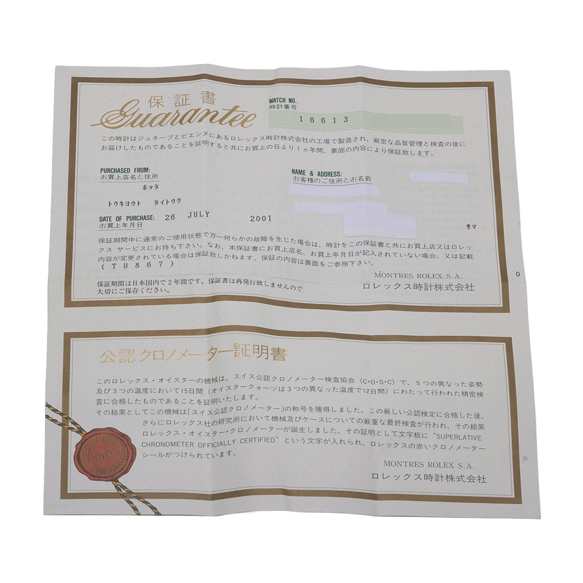 - メーカー保証書( 2001年7月国内購入) / タグ