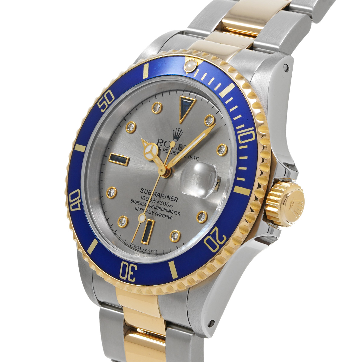 ロレックス サブマリーナ デイト 16613SG グレー/サファイア/ダイヤモンド メンズ 時計 【中古】【wristwatch】