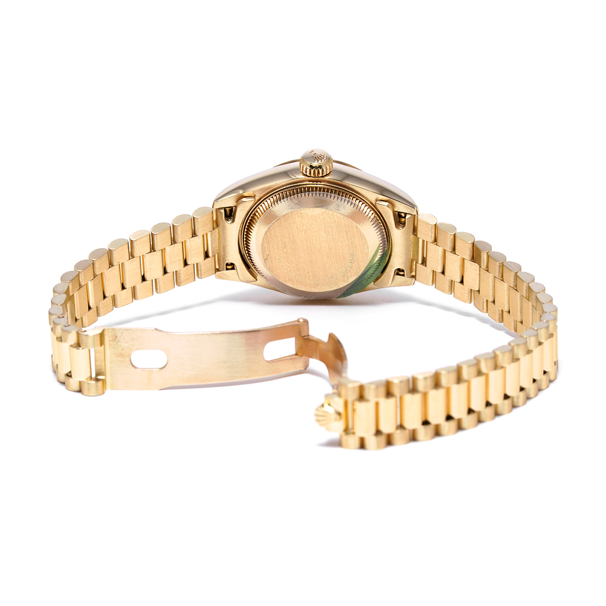 それから四半世紀の歳月を経て進化したこの世代のレディ デイトジャストの中でも、このゴールドモデルはもちろん特別な存在であり、最高峰の証であるプレジデントブレスレットがフィットされているほか、様々なジュエリーピースのベースモデルとして多く用いられています。 -