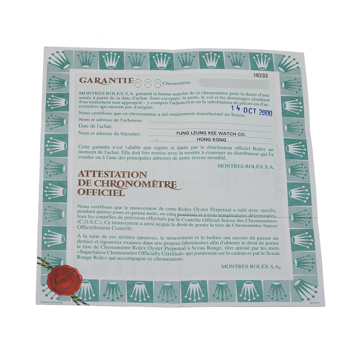 - メーカー保証書( 2000年10月海外購入) / メーカー箱(ダメージ)/タグ