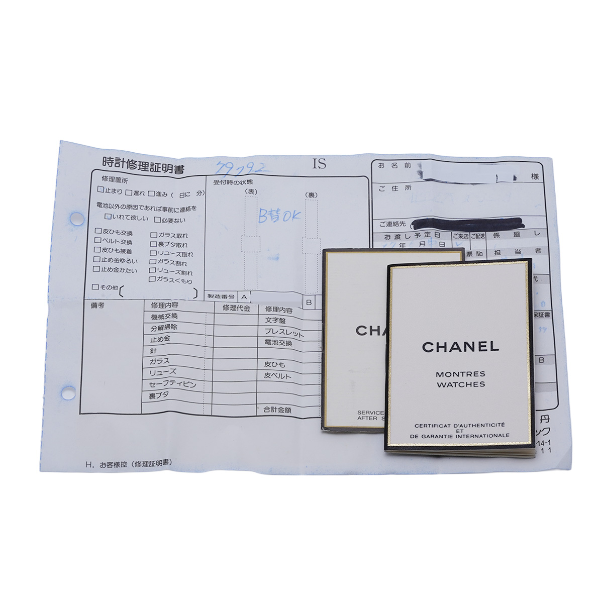 - メーカー保証書( 1988年5月海外購入) / 修理証明書(1997年5月 電池交換)