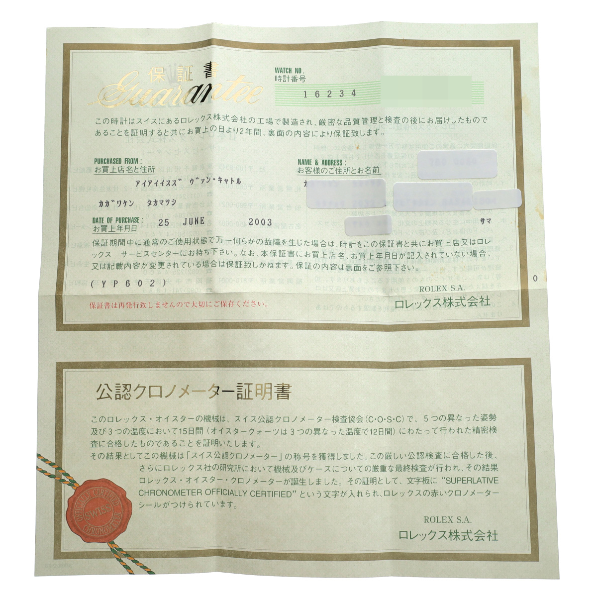 - メーカー保証書( 2003年6月国内購入) / メーカー箱(ダメージ)/冊子