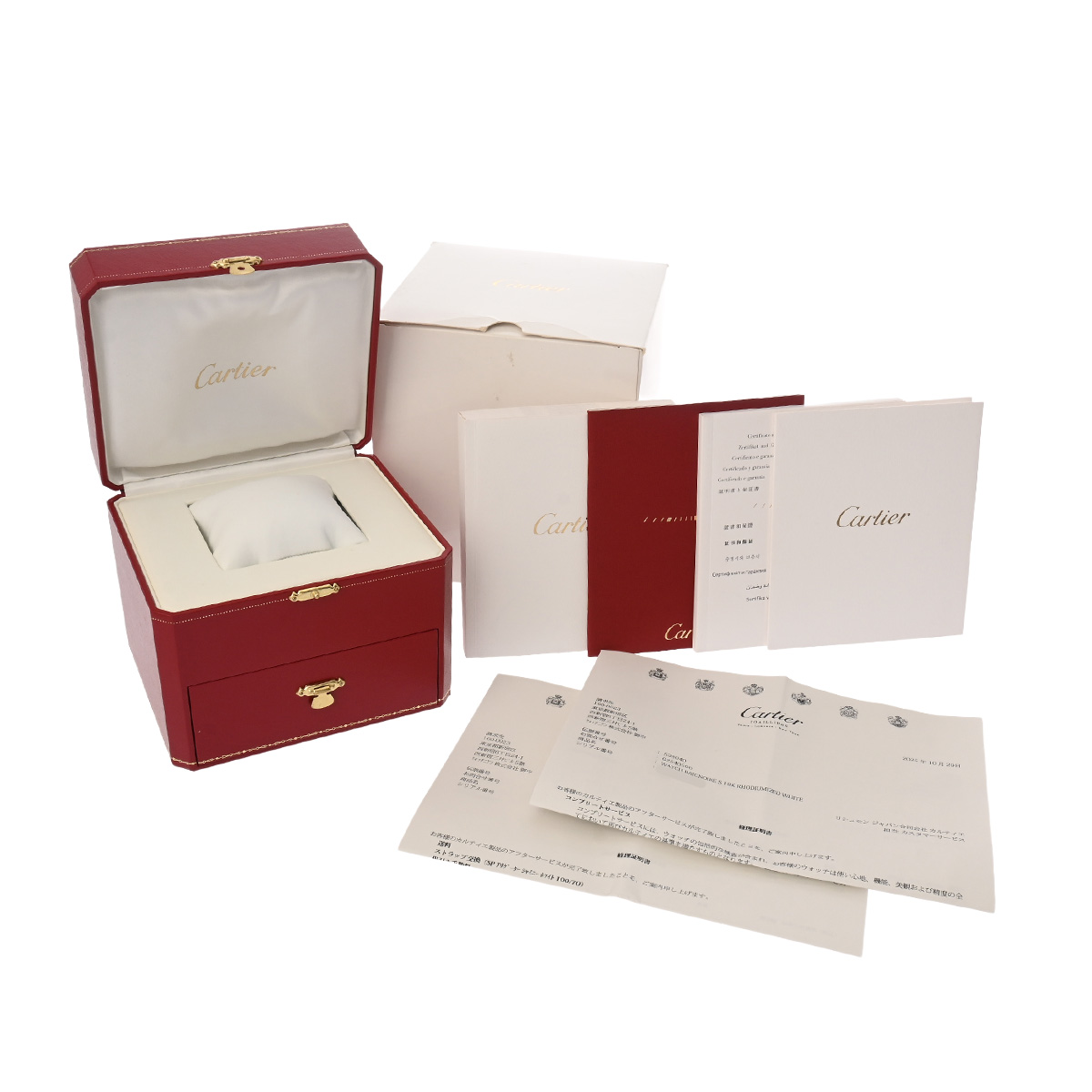 - メーカー保証書( 2014年2月国内購入) / メーカー箱/冊子 / 原産地証明書、修理証明書、請求書(2025年9月ストラップ交換、2025年10月コンプリートサービス)