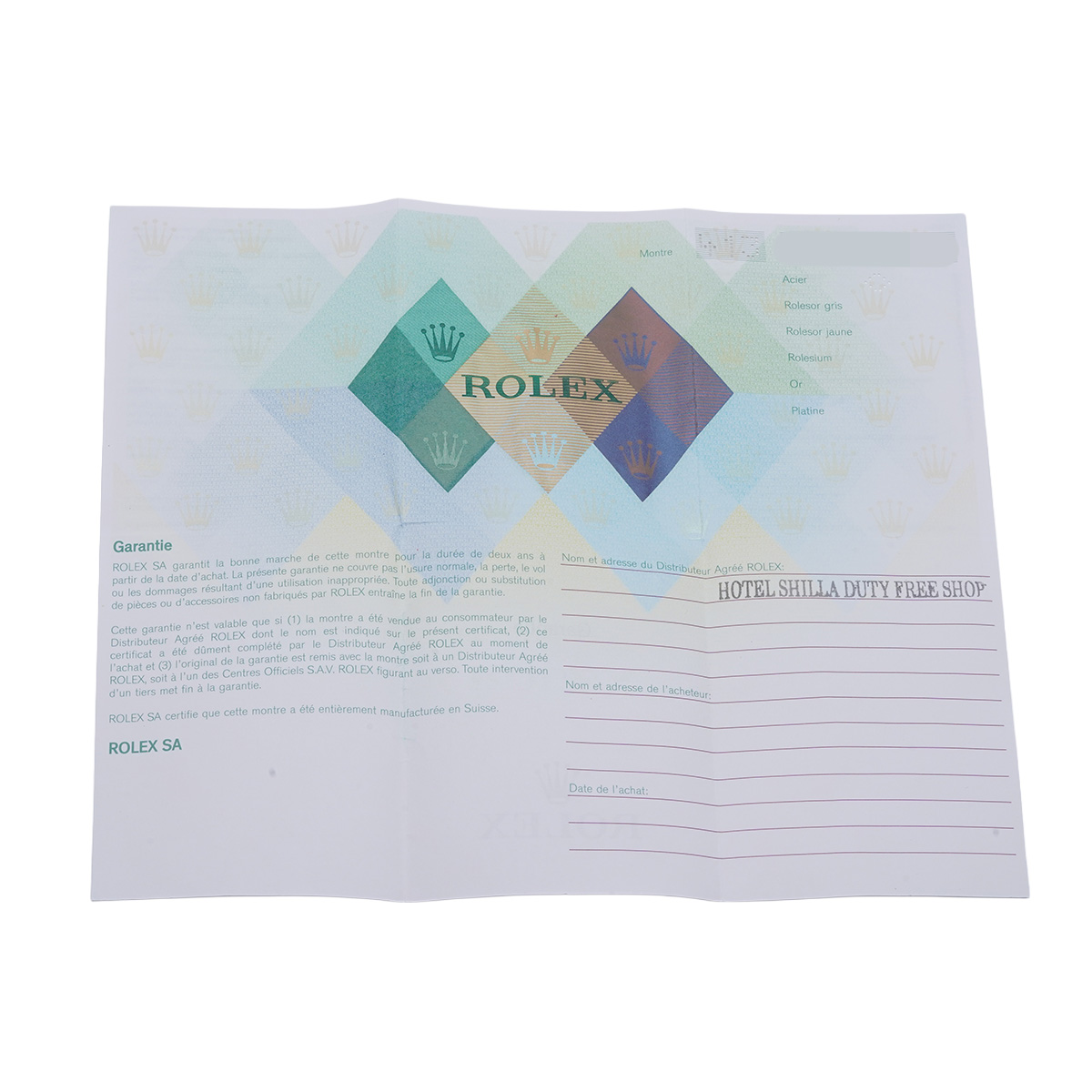 - メーカー保証書( 海外購入 購入日無記入) / タグ