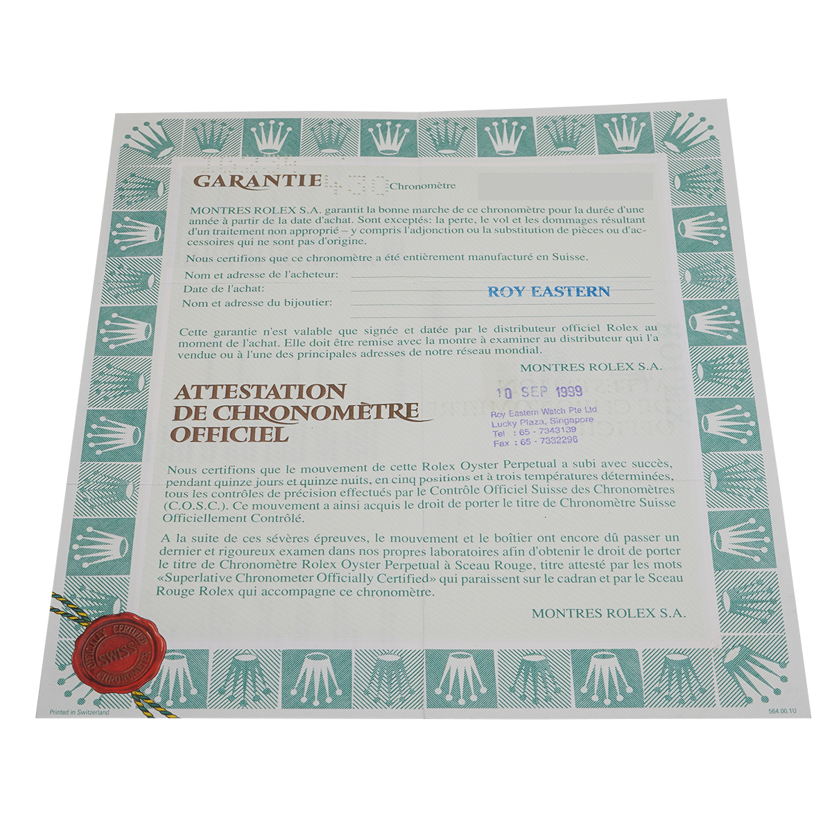 - メーカー保証書( 1999年9月海外購入) / タグ