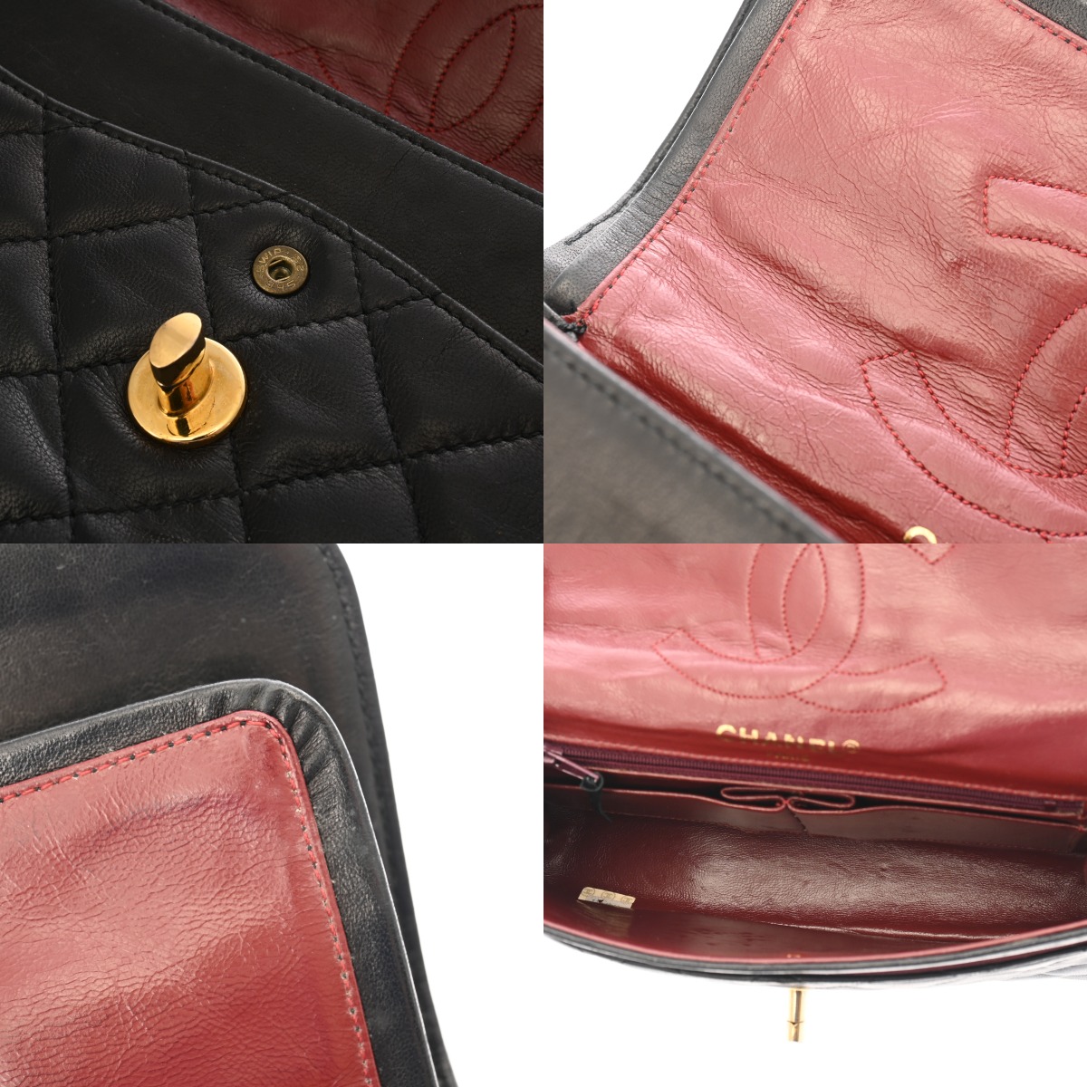 - フラップ裏含めシワやスレ、押し跡、薄汚れ、金具に変色、スリキズなど使用感がございます。