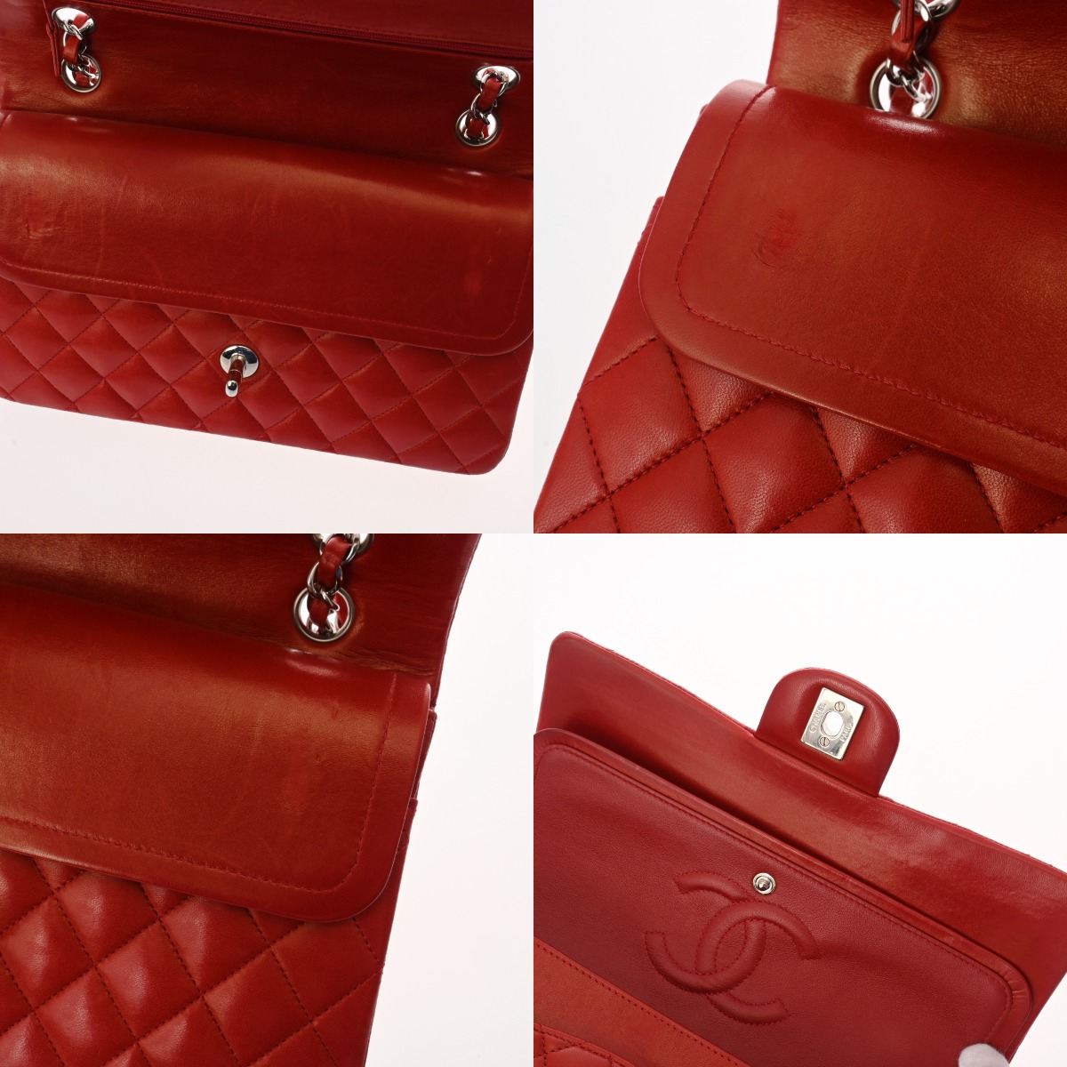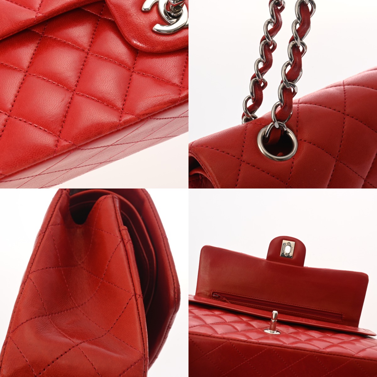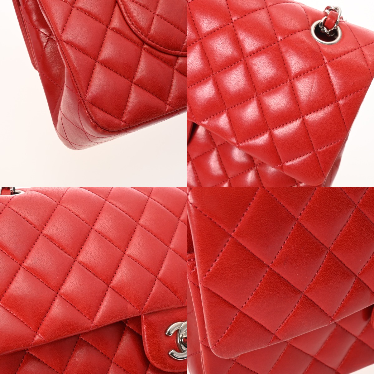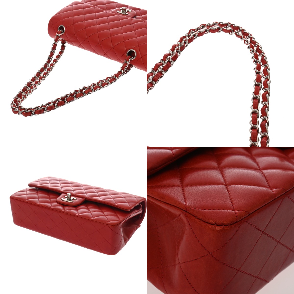 シャネル マトラッセ Wフラップ Wチェーンショルダー 25 レッド A01112 ラムスキン レディース バッグ 【中古】【bag】