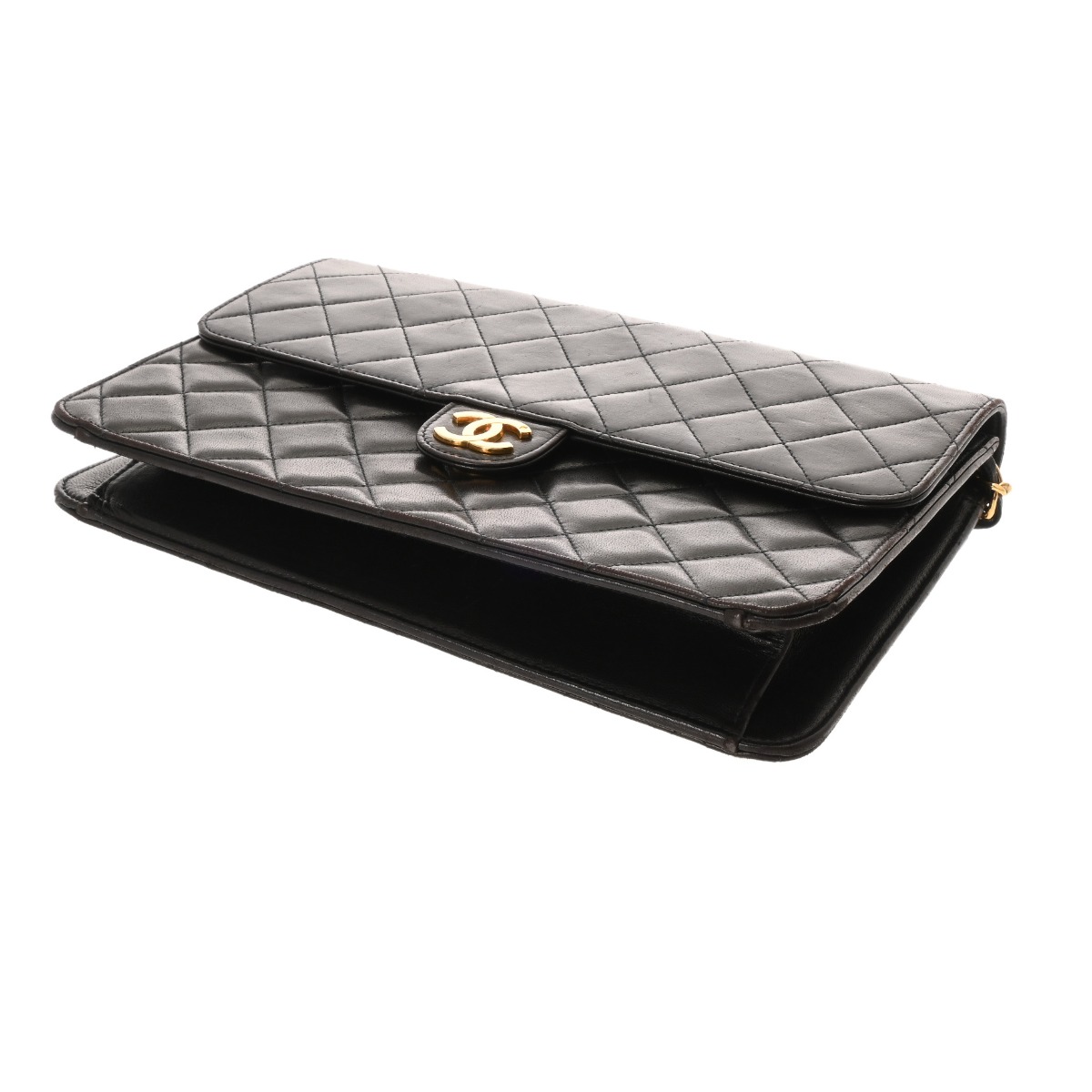シャネル マトラッセ プッシュロックチェーンショルダー ブラック ラムスキン レディース バッグ 【中古】【bag】