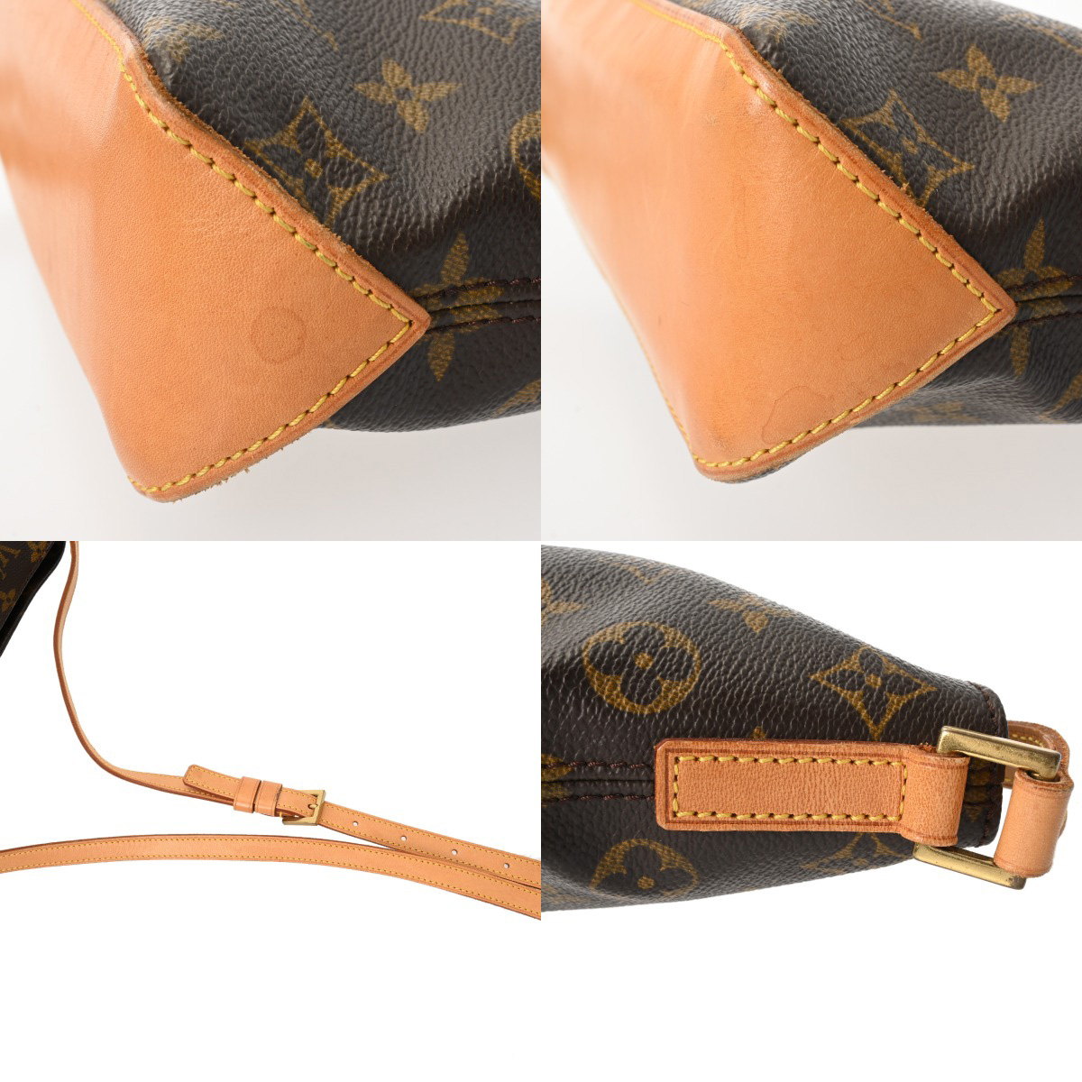 - 薄汚れやスレ、シワ、ヌメ革にヤケ、金具にスレがございます。