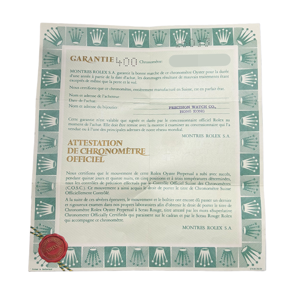 販売日の記載がありませんが、貴重な当時の保証書が付属しています。