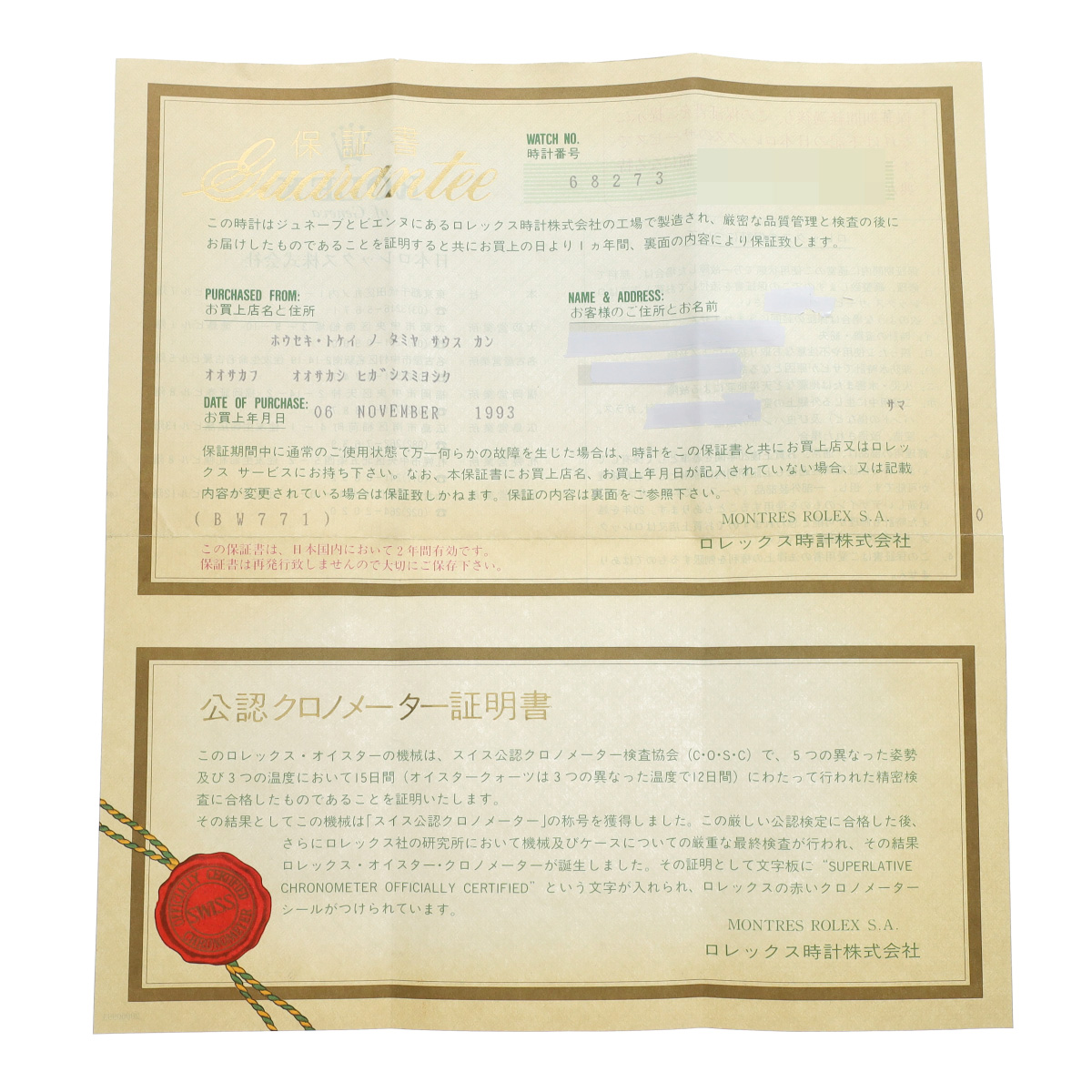 - メーカー保証書( 1993年11月国内購入)