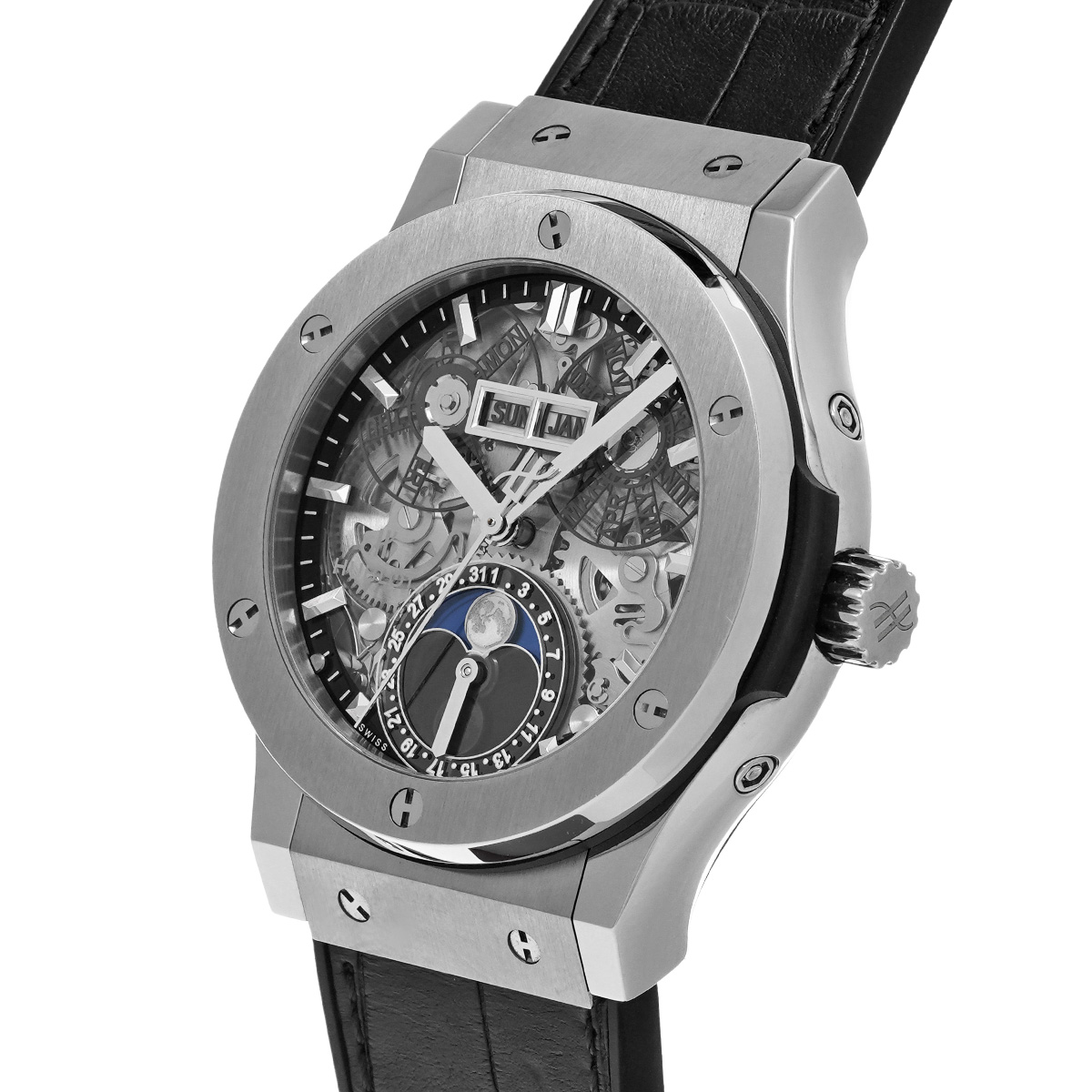 ウブロ クラシックフュージョン アエロフュージョン ムーンフェイズ チタニウム 547.NX.0170.LR サファイアクリスタル メンズ 時計 【中古】【wristwatch】