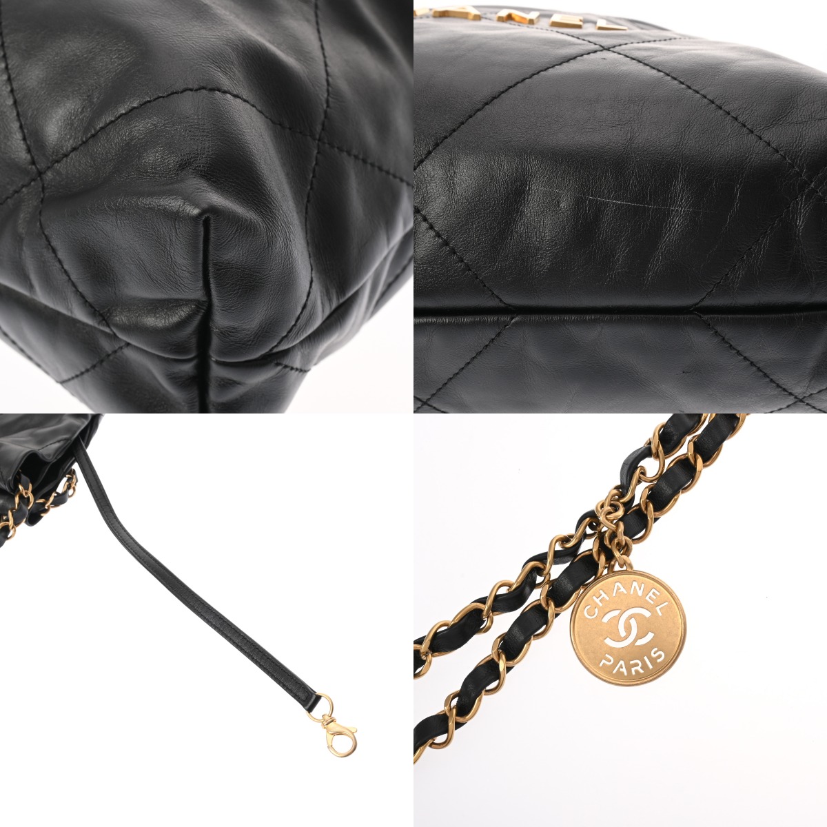 シャネル スモール ハンドバッグ CHANEL22 ブラック AS3260 シャイニーカーフスキン レディース バッグ 【中古】【bag】