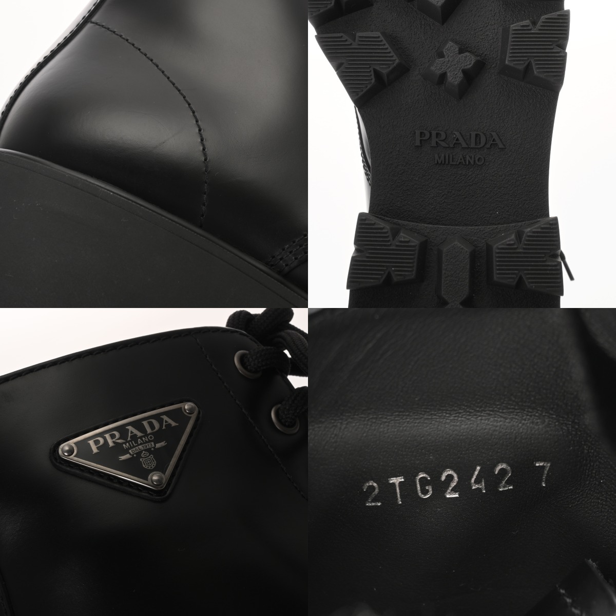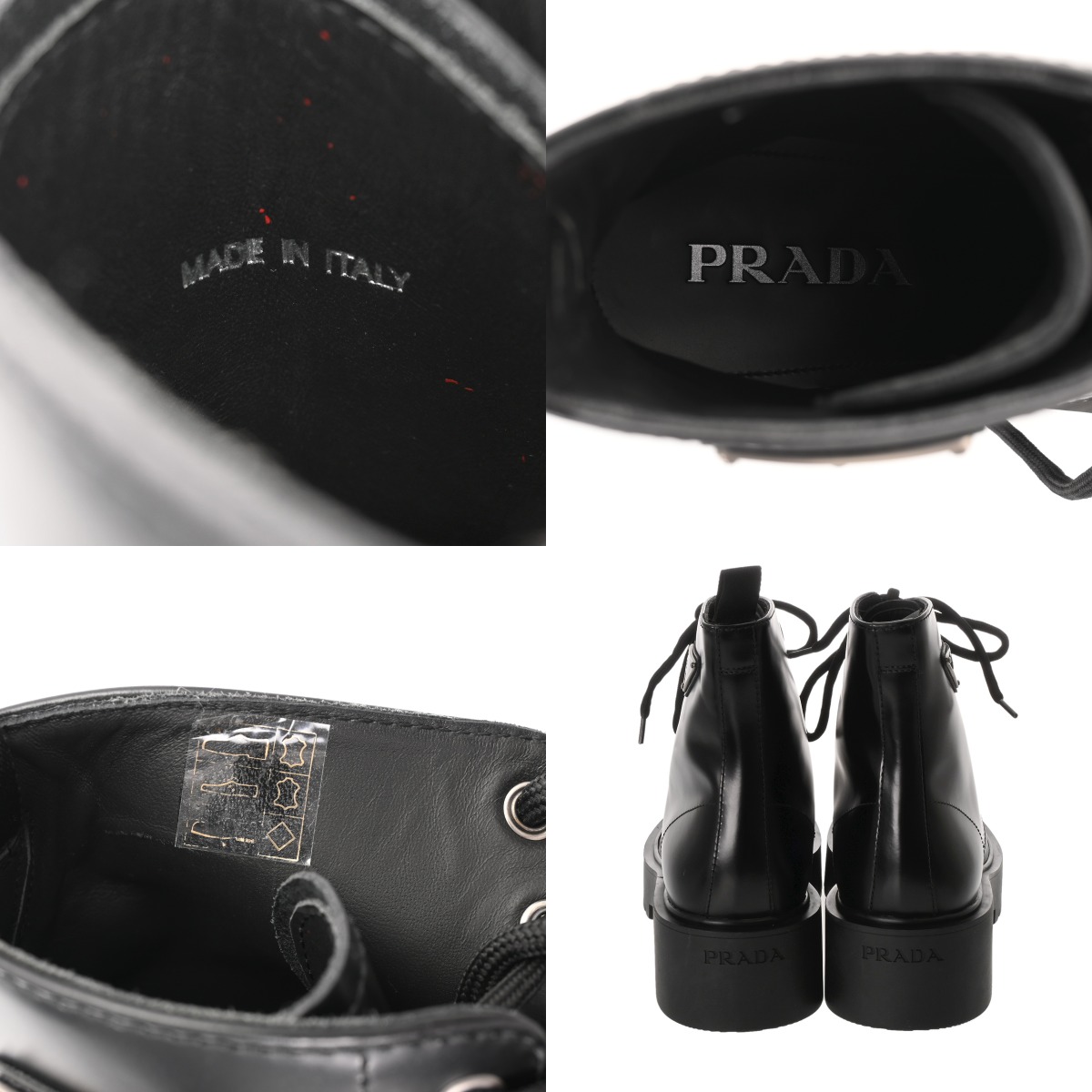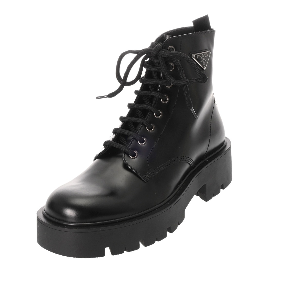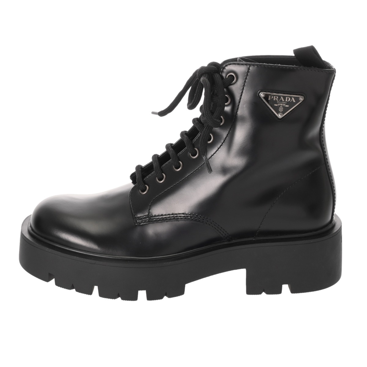 プラダ アンクルブーツ #7 ブラック/シルバー金具 2TG242 ブラッシュドレザー メンズ 靴 【中古】【other】