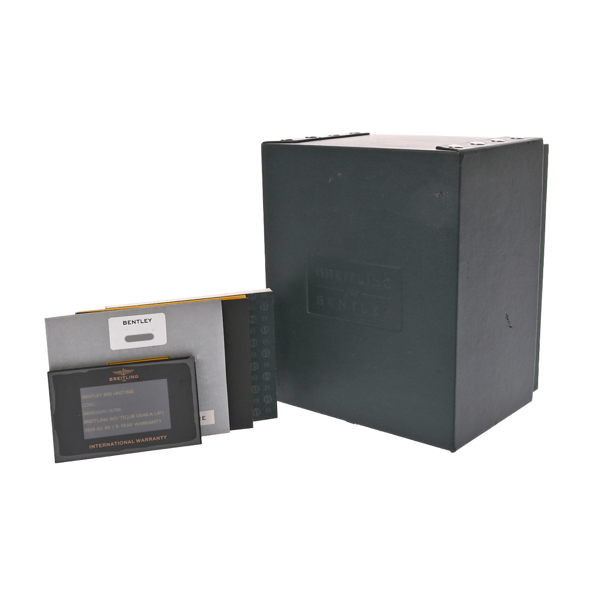 - メーカー保証書( 2019年1月国内購入) / 替えベルト( AB0521) / メーカー箱(ダメージ)/冊子/クロノメーター証明書 / ※内箱(欠品)