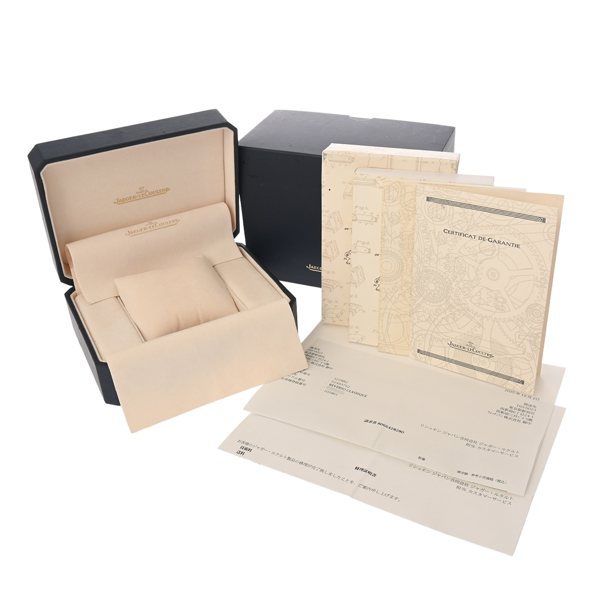 - メーカー保証書( 1999年10月海外購入 時計の情報無記入) / メーカー箱(ダメージ)/冊子 / 修理証明書/請求書(2025年12月ストラップ交換)